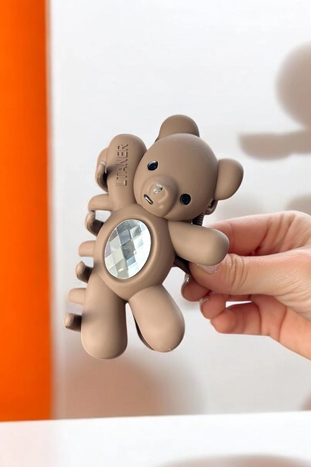 Kahverengi Ayıcık Figürlü Taş Detaylı Mandal Toka