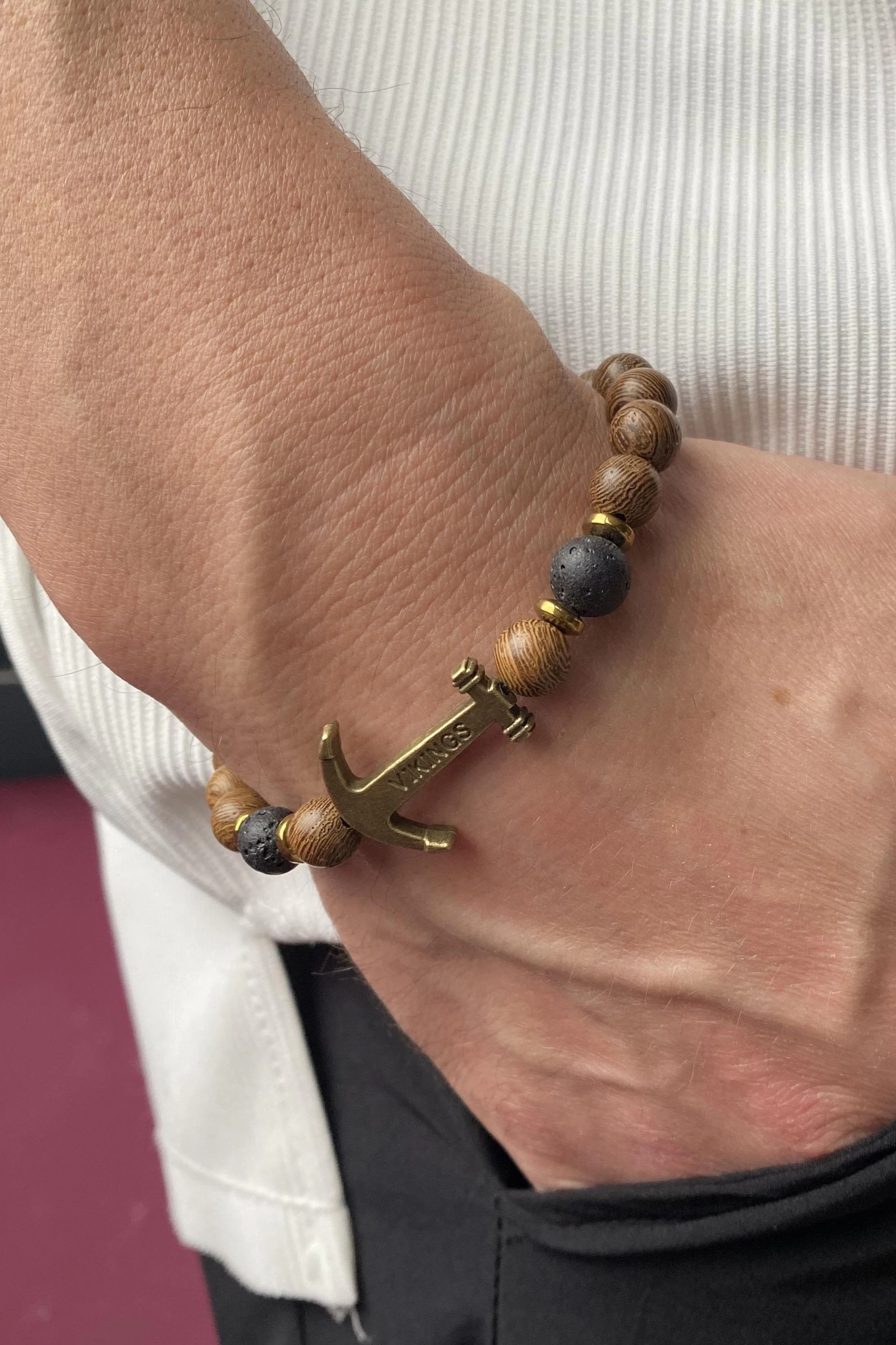Kahverengi Çapa Figürlü Boncuk Erkek Bileklik