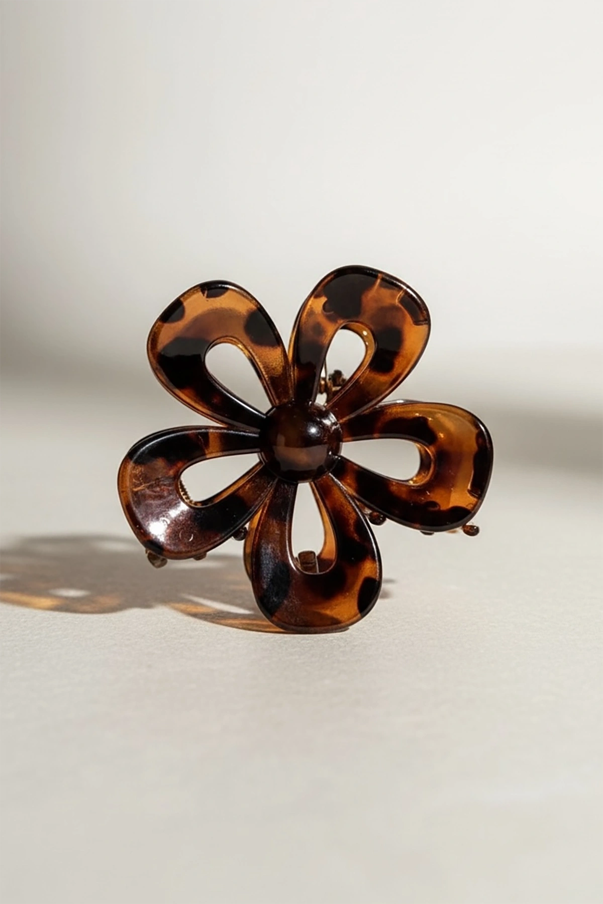 Kahverengi Çiçek Figürlü Leopar Desenli Mandal Toka