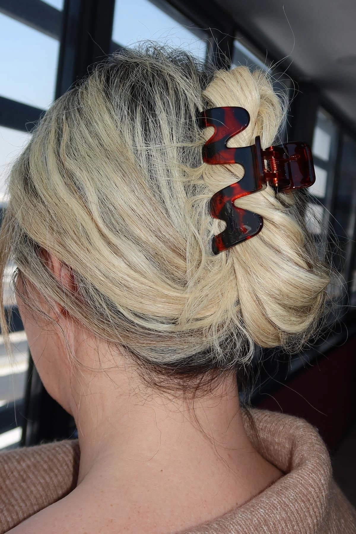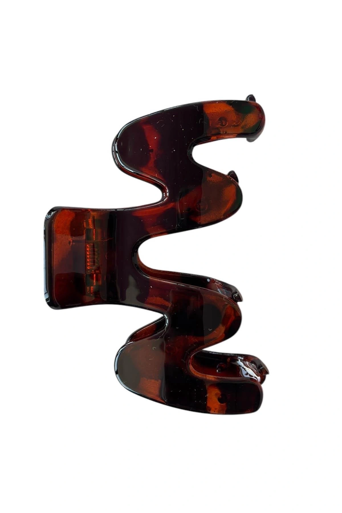 Kahverengi Dalga Detaylı Leopar Desenli Mandal Toka
