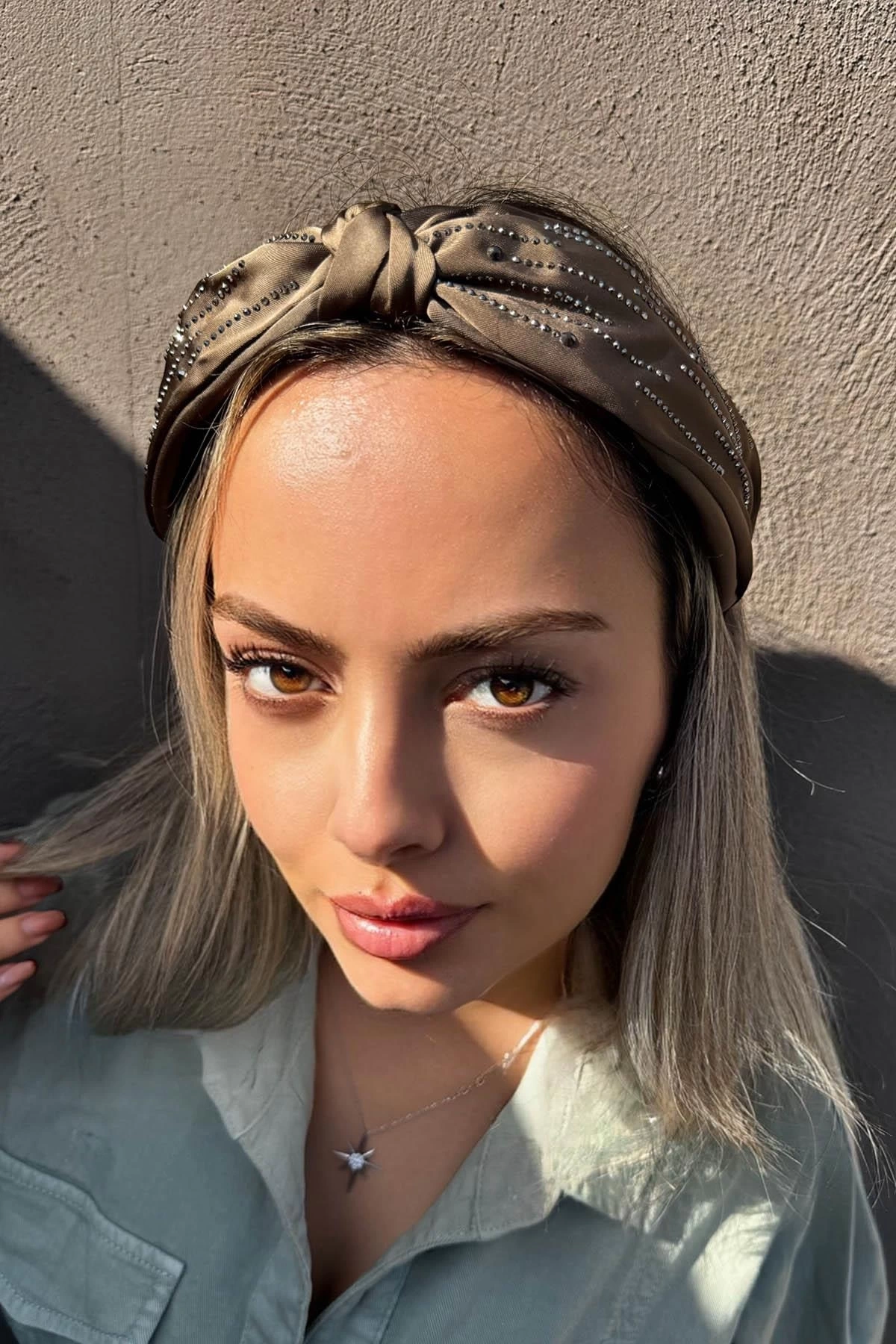 Kahverengi Düğüm Detaylı Taşlı Taç