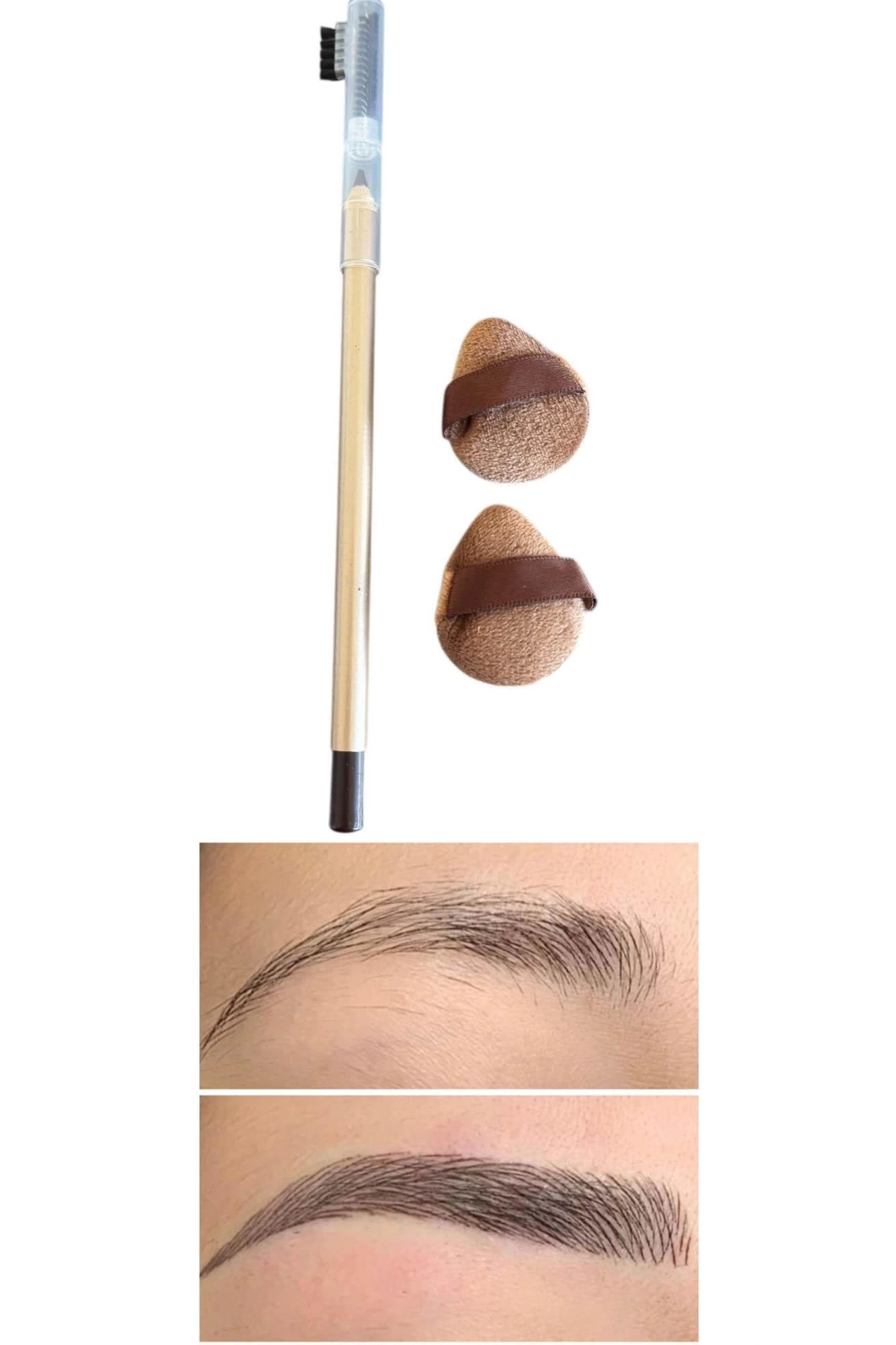 Kahverengi göz kalemi ve kaş fırçası bulunmaktadır.