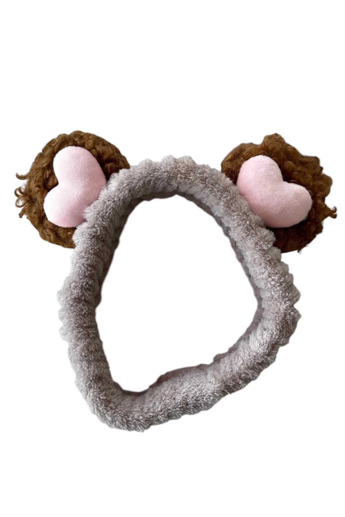 Kahverengi Kalp Figürlü Peluş Saç Bandı