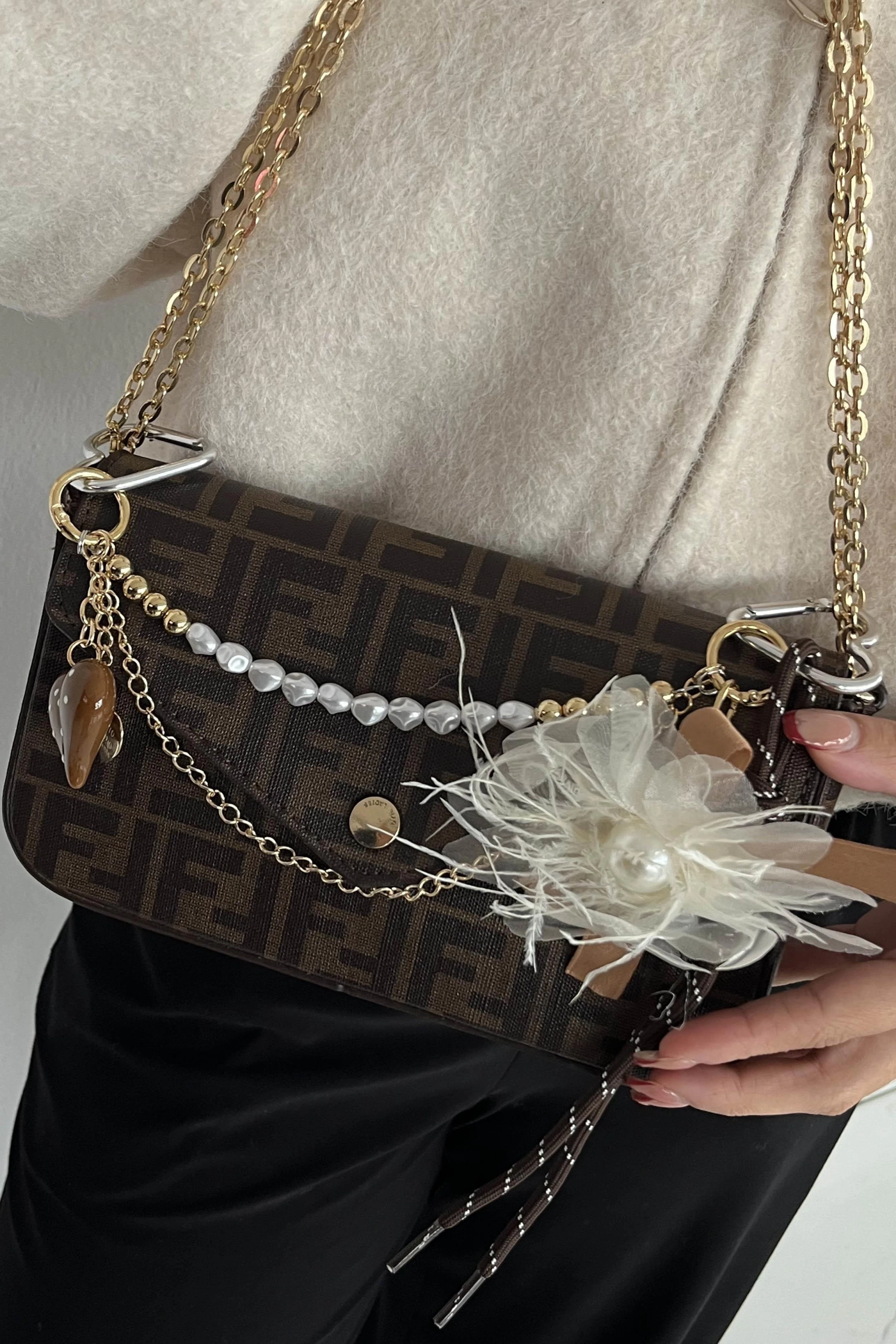 Kahverengi Karışık Figürlü Çanta Charm/ Anahtarlık