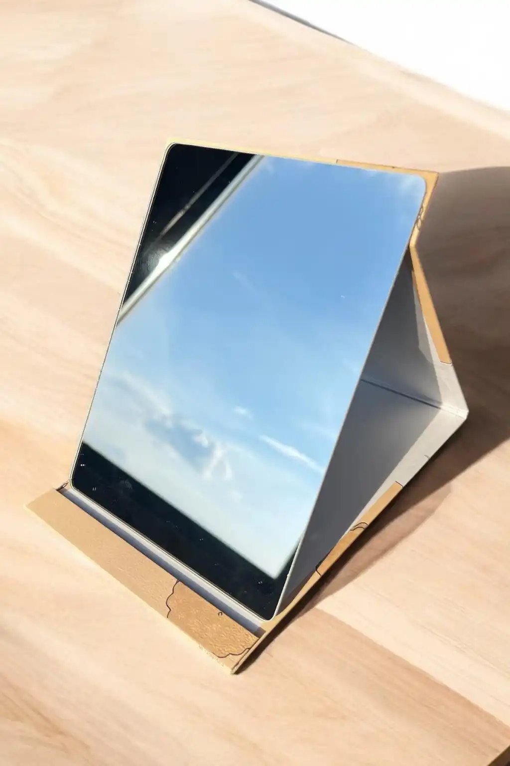 Mavi Renk Leopar Desenli Küçük Boy Katlanabilir Makyaj Aynası