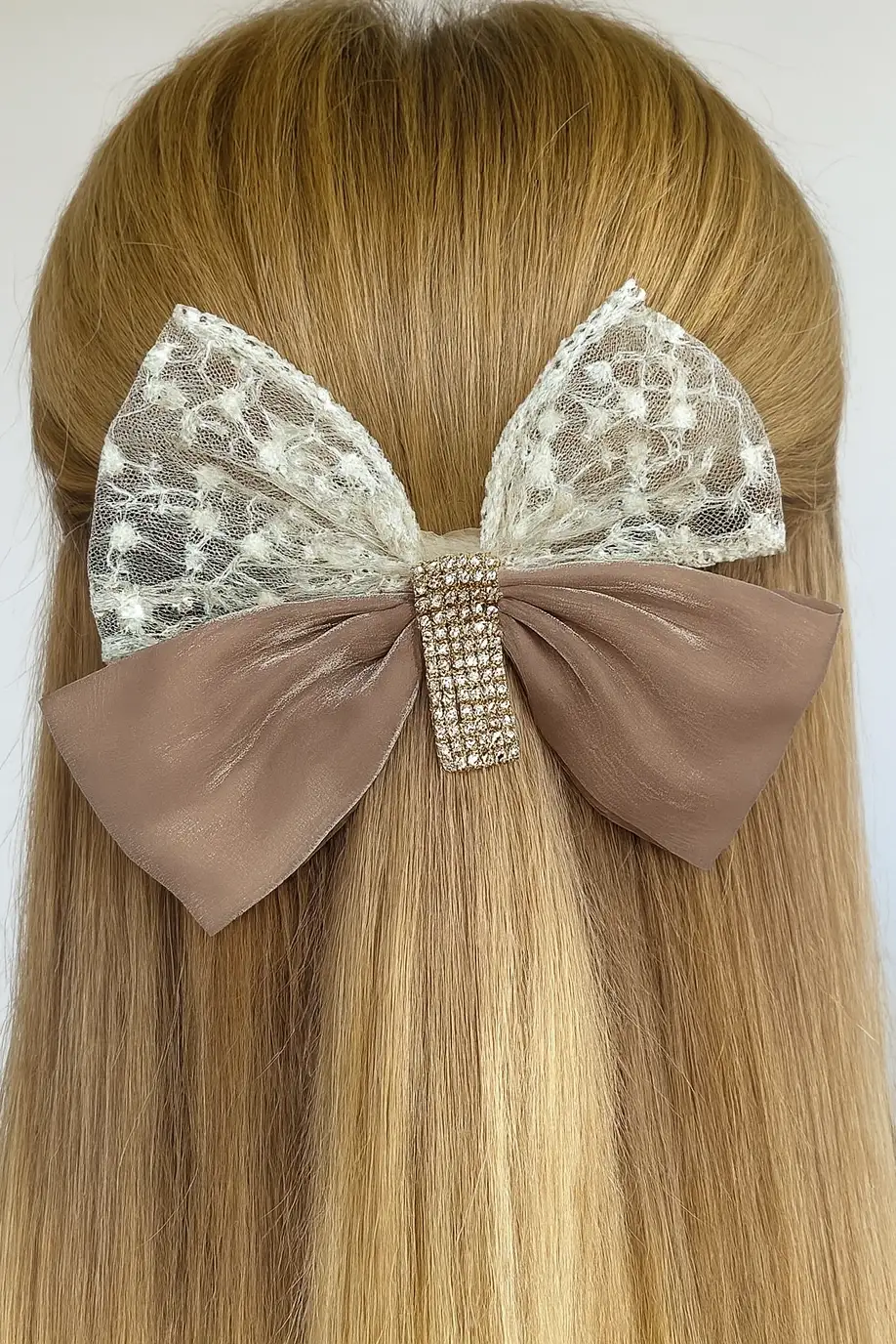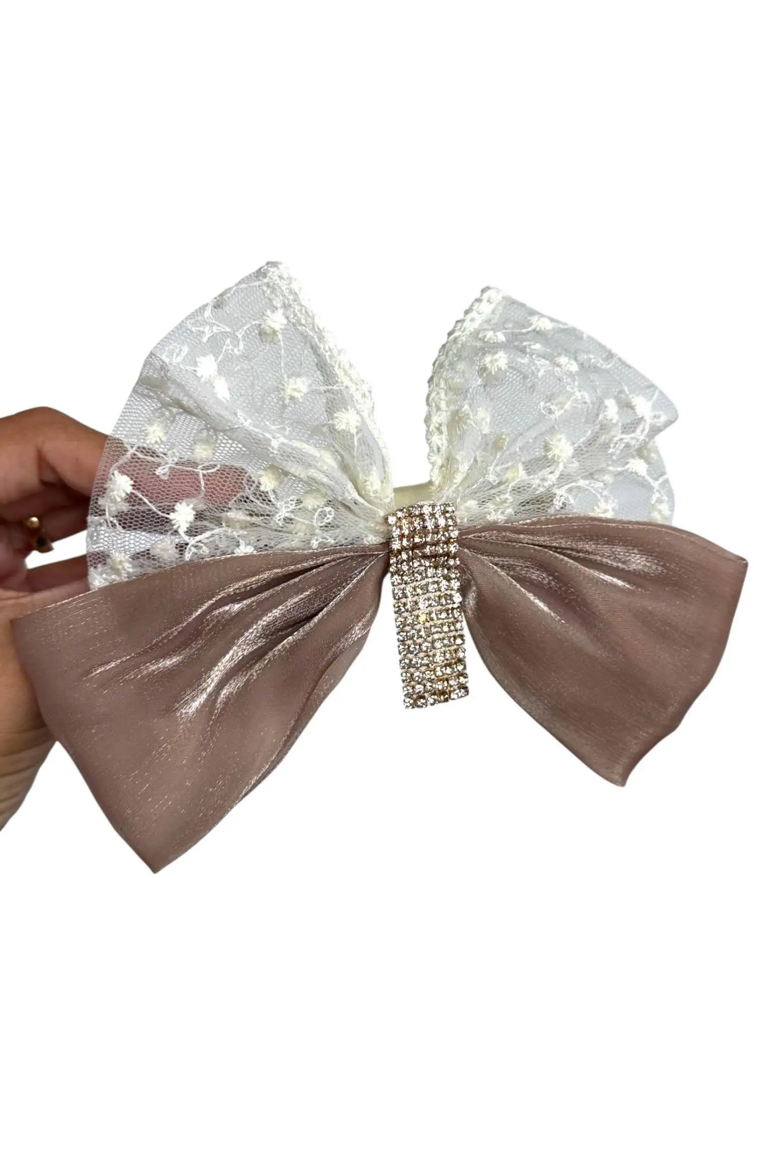 Bej Renk Kurdele Figürlü İnci Detaylı Otomat Toka