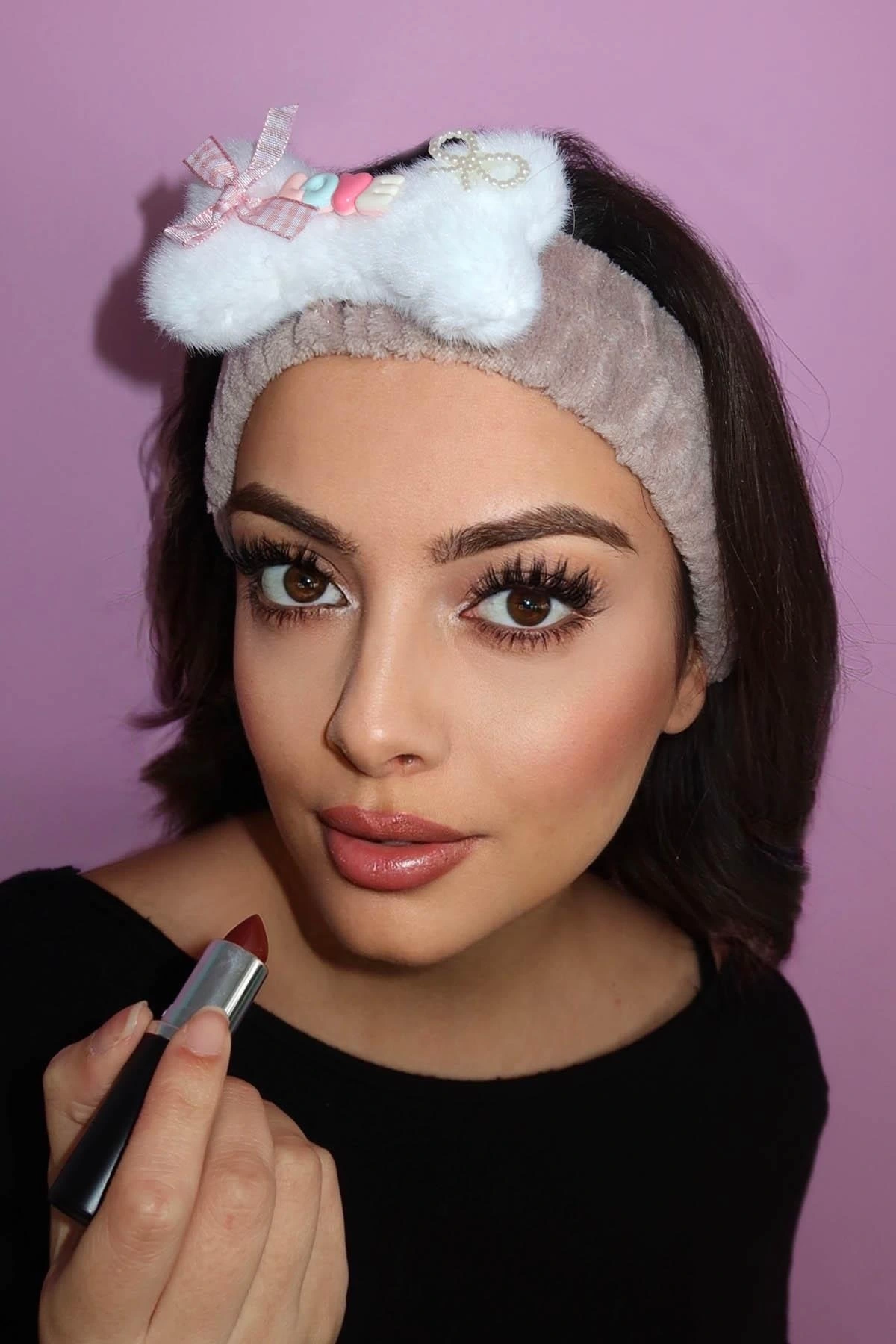 Pembe Renk Cırt Bantlı Havlu Saç Bandı
