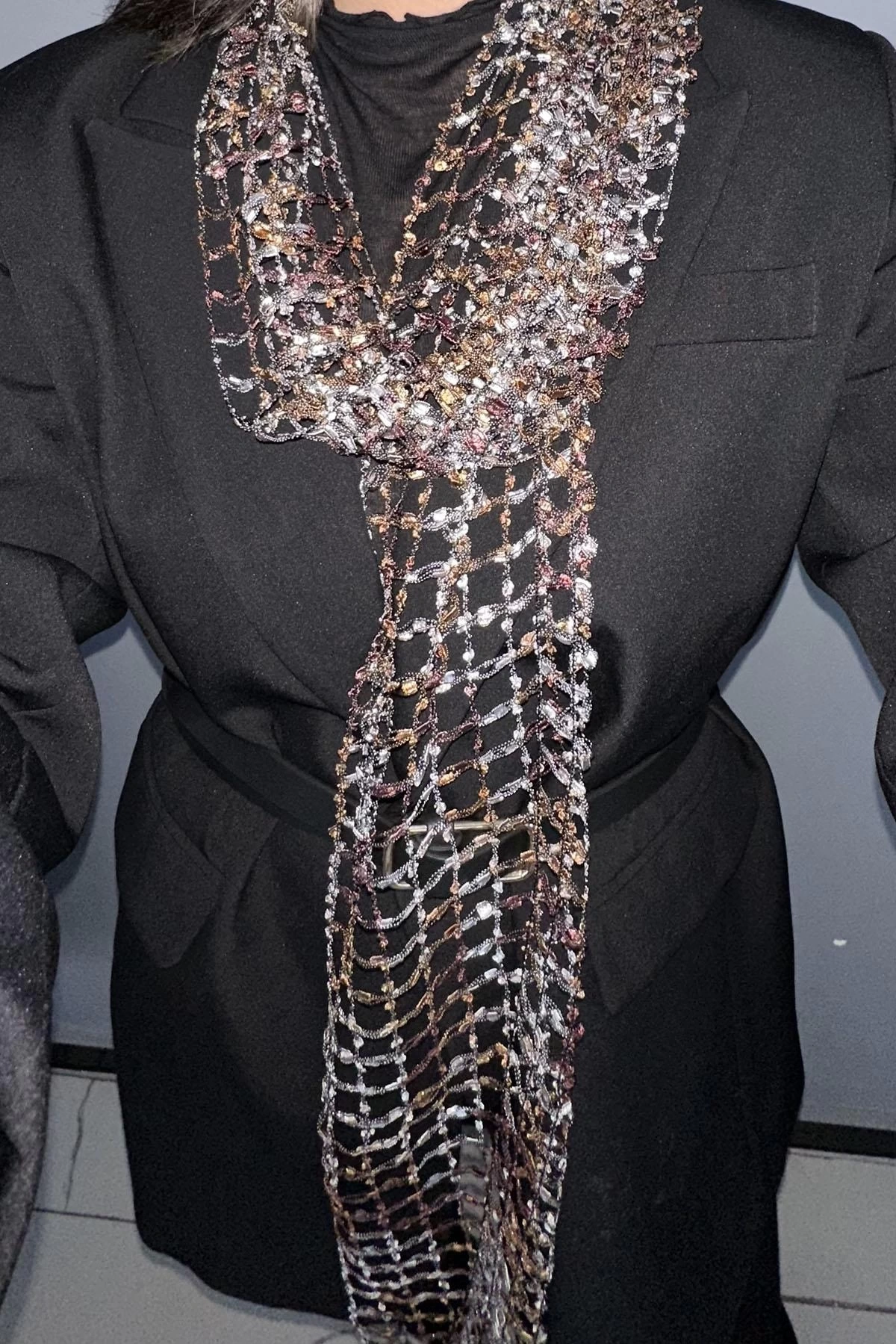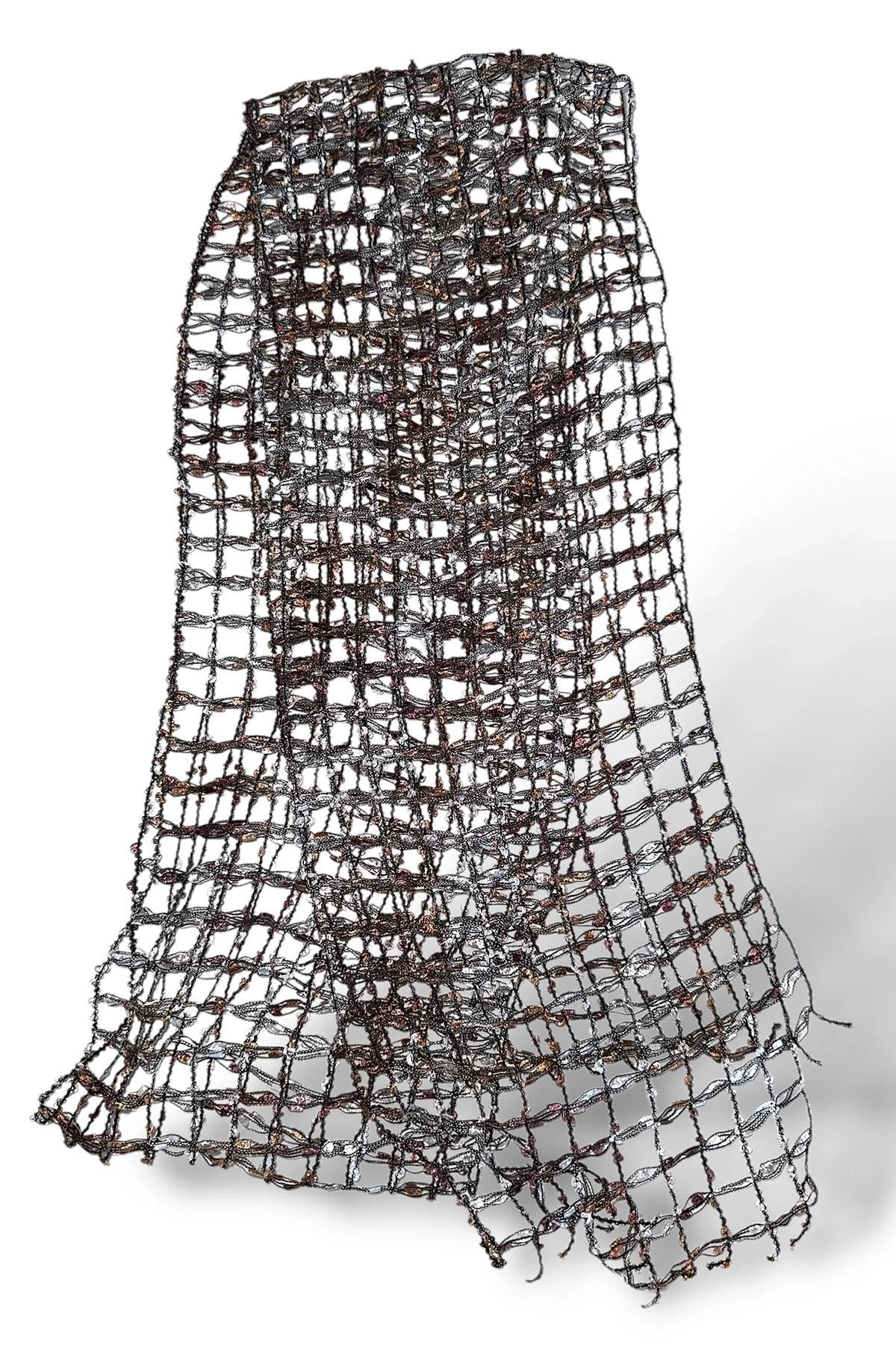 Kahverengi Örgü Detaylı Şal