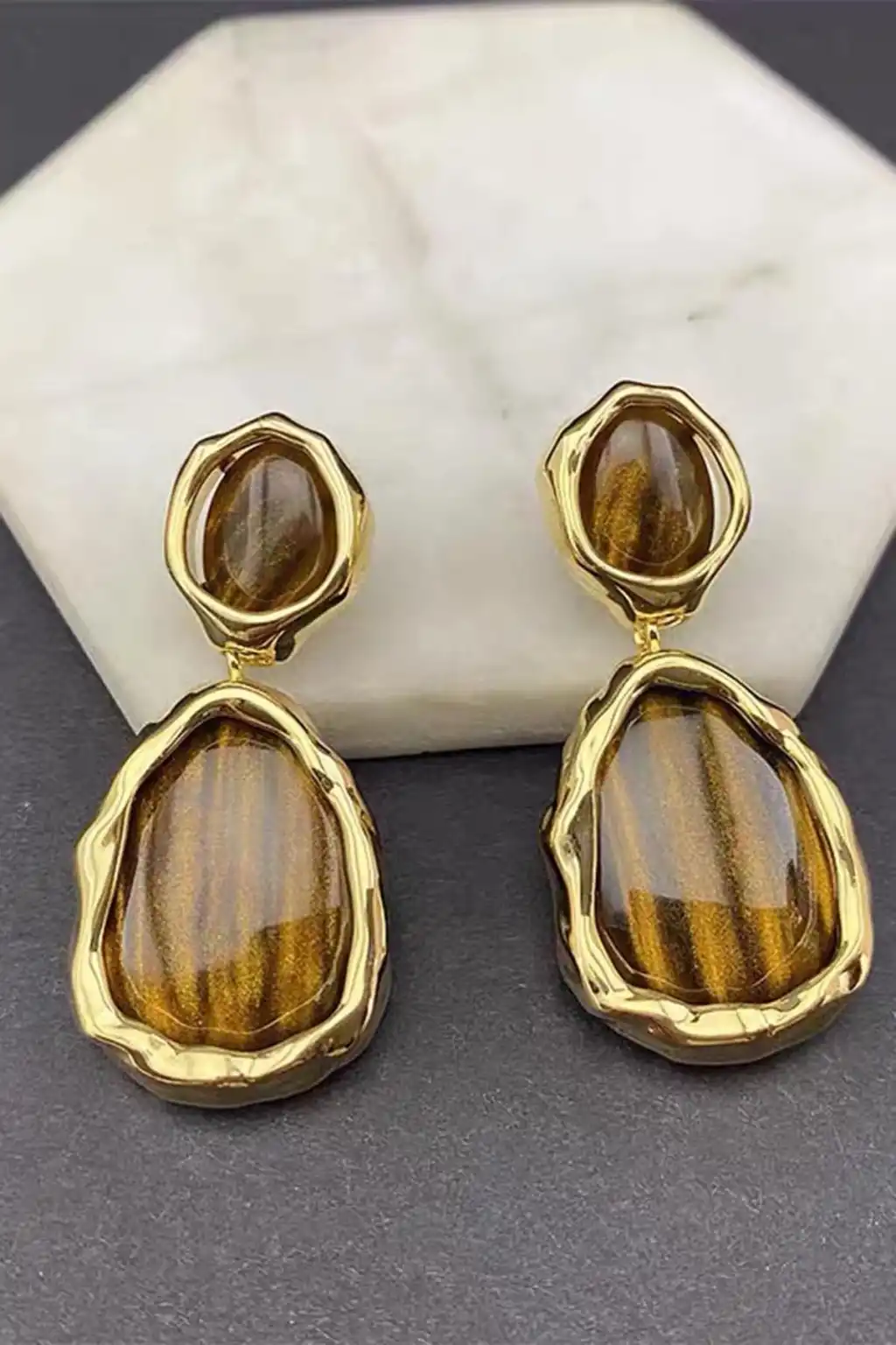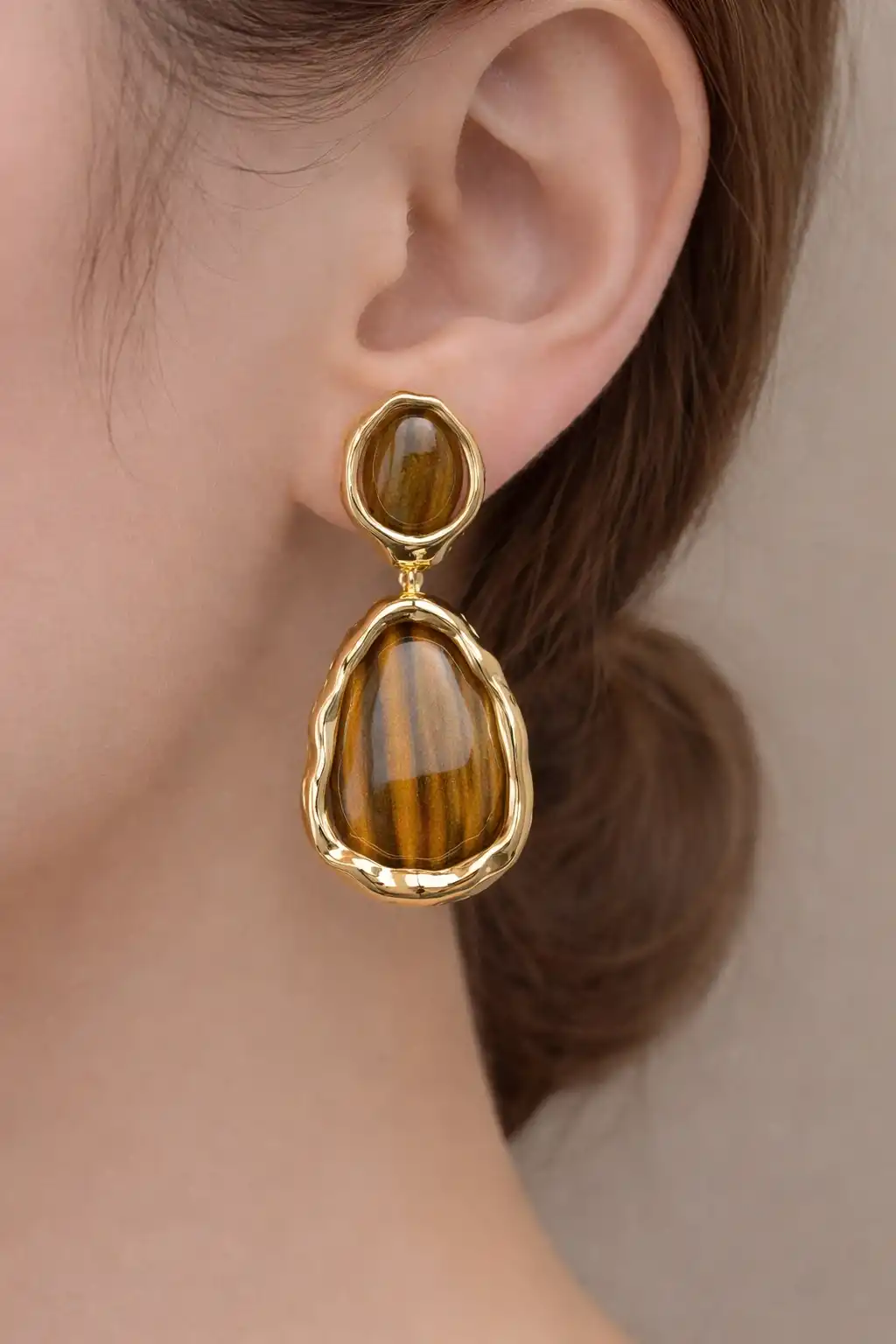 Kahverengi Sallantılı Metal Küpe (Çift)