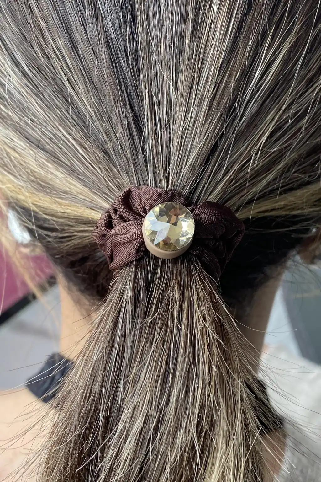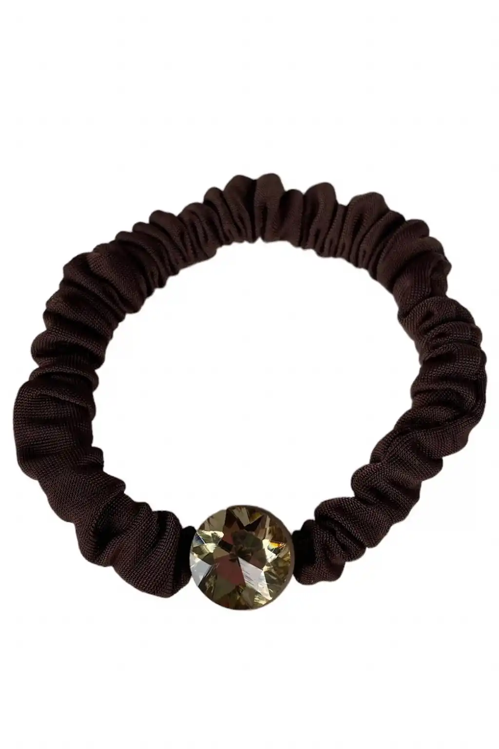 Kahverengi Taş Detaylı Saten Simit Toka