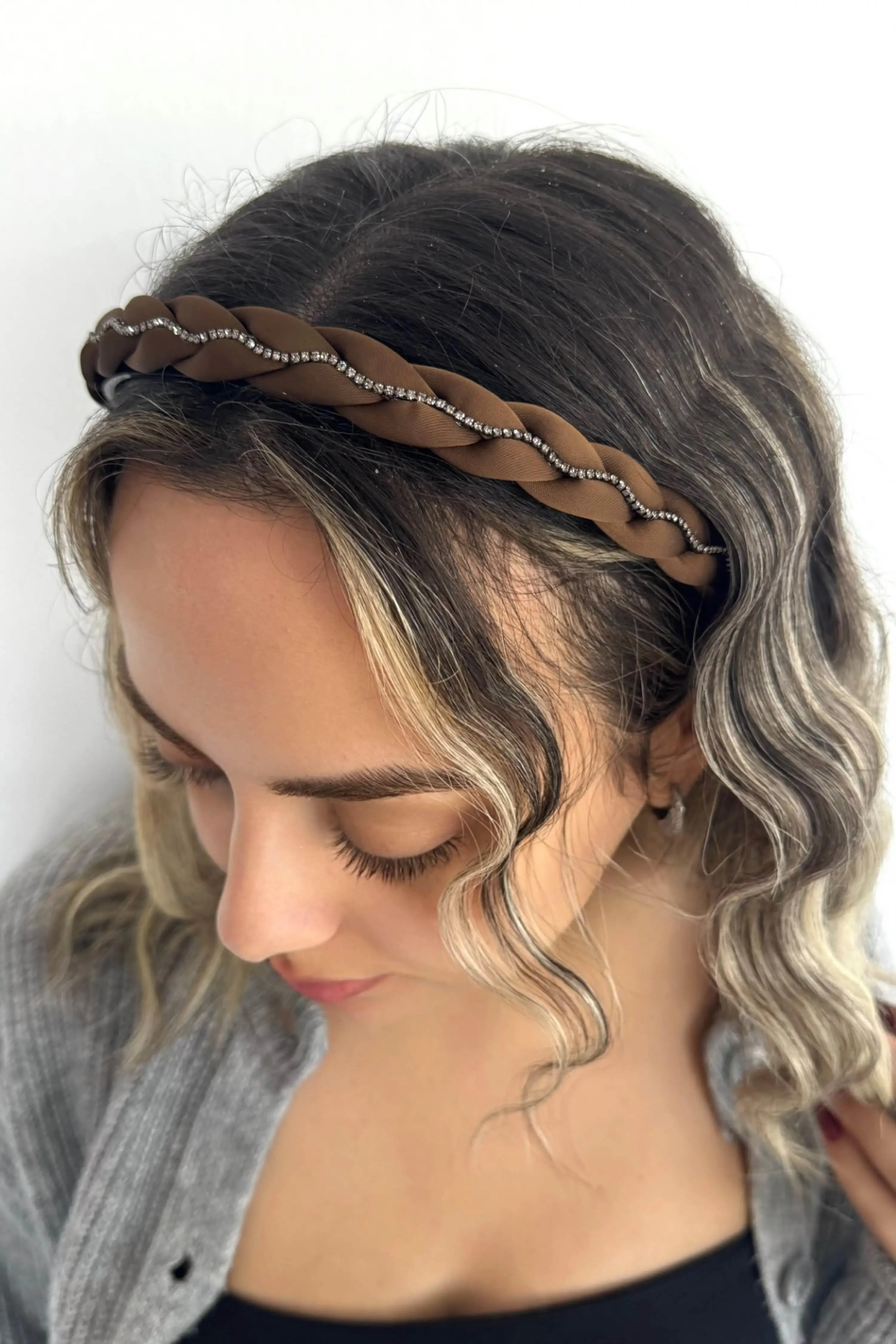 Gümüş Renk Düğüm Detaylı Taşlı Taç