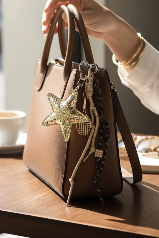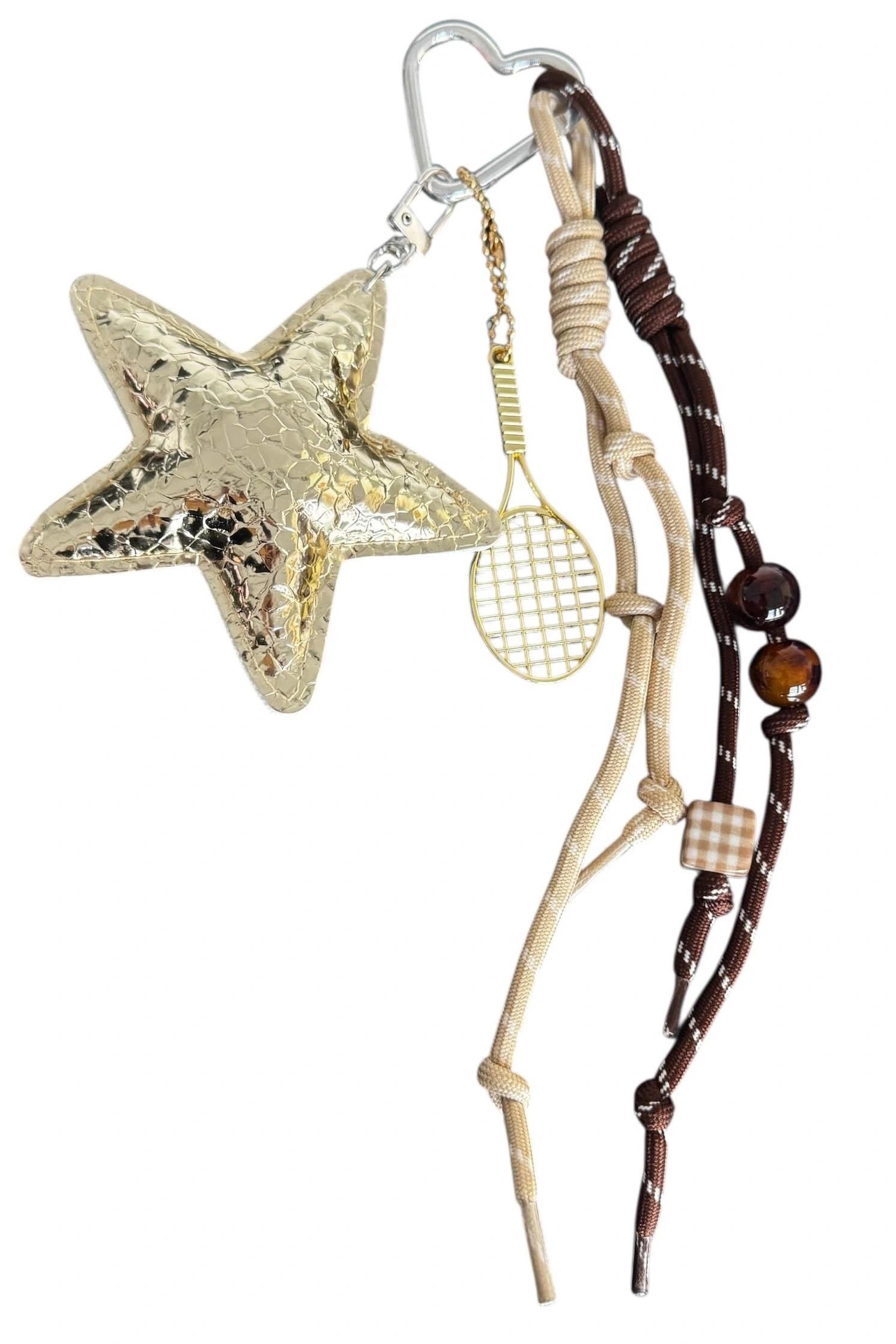 Kahverengi Yıldız Ve Raket Figürlü Çanta Charm/ Anahtarlık