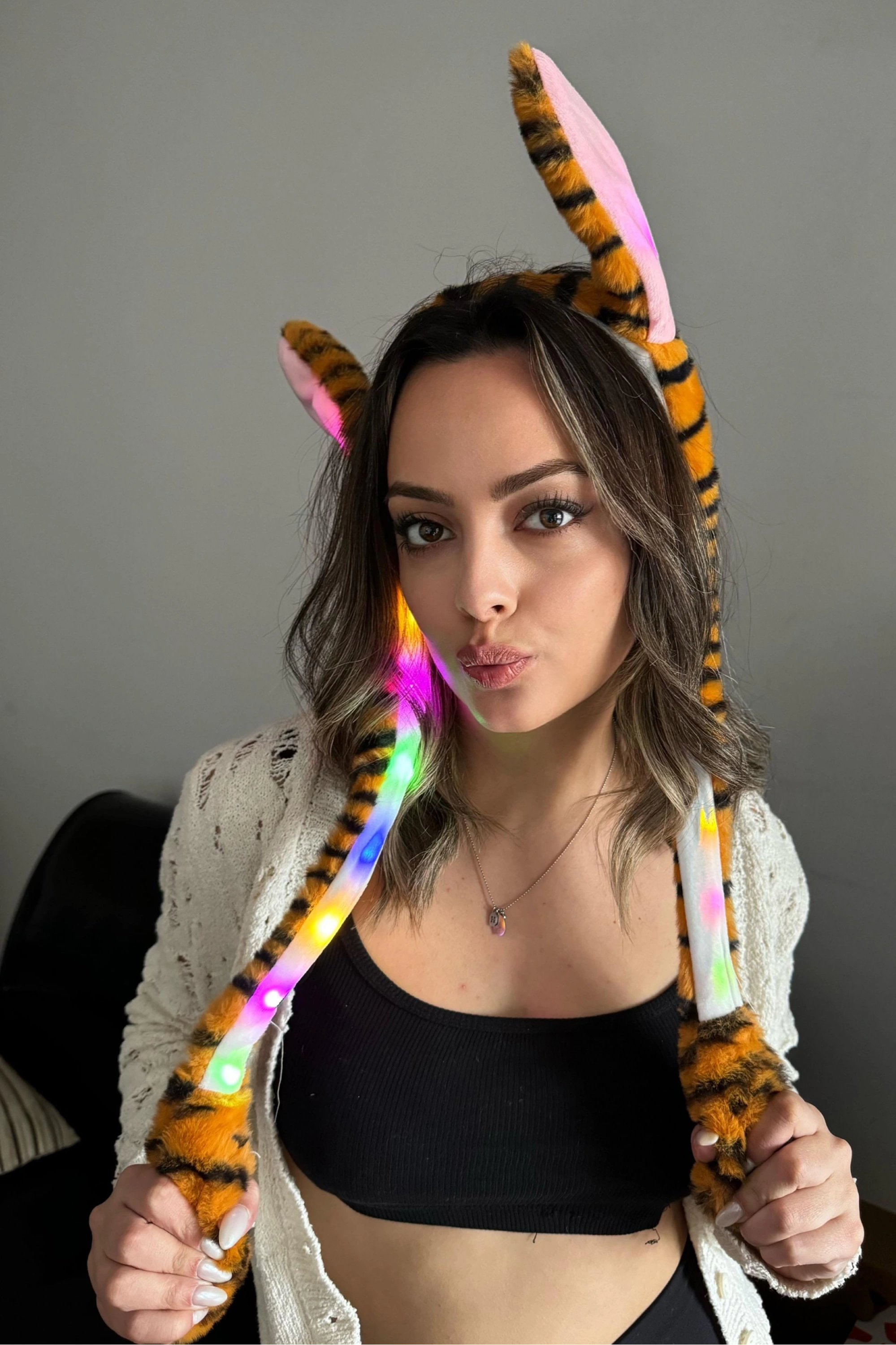 Kaplan Desenli Işıklı Kulakları Oynayan Peluş Taç