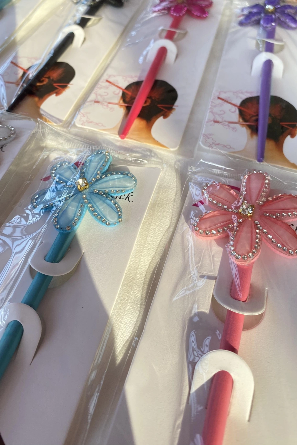 Karışık Renk 12'li Çiçek Detaylı Topuz Kalemi