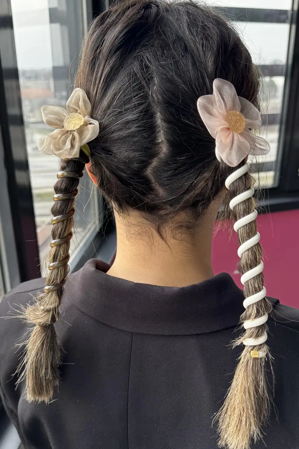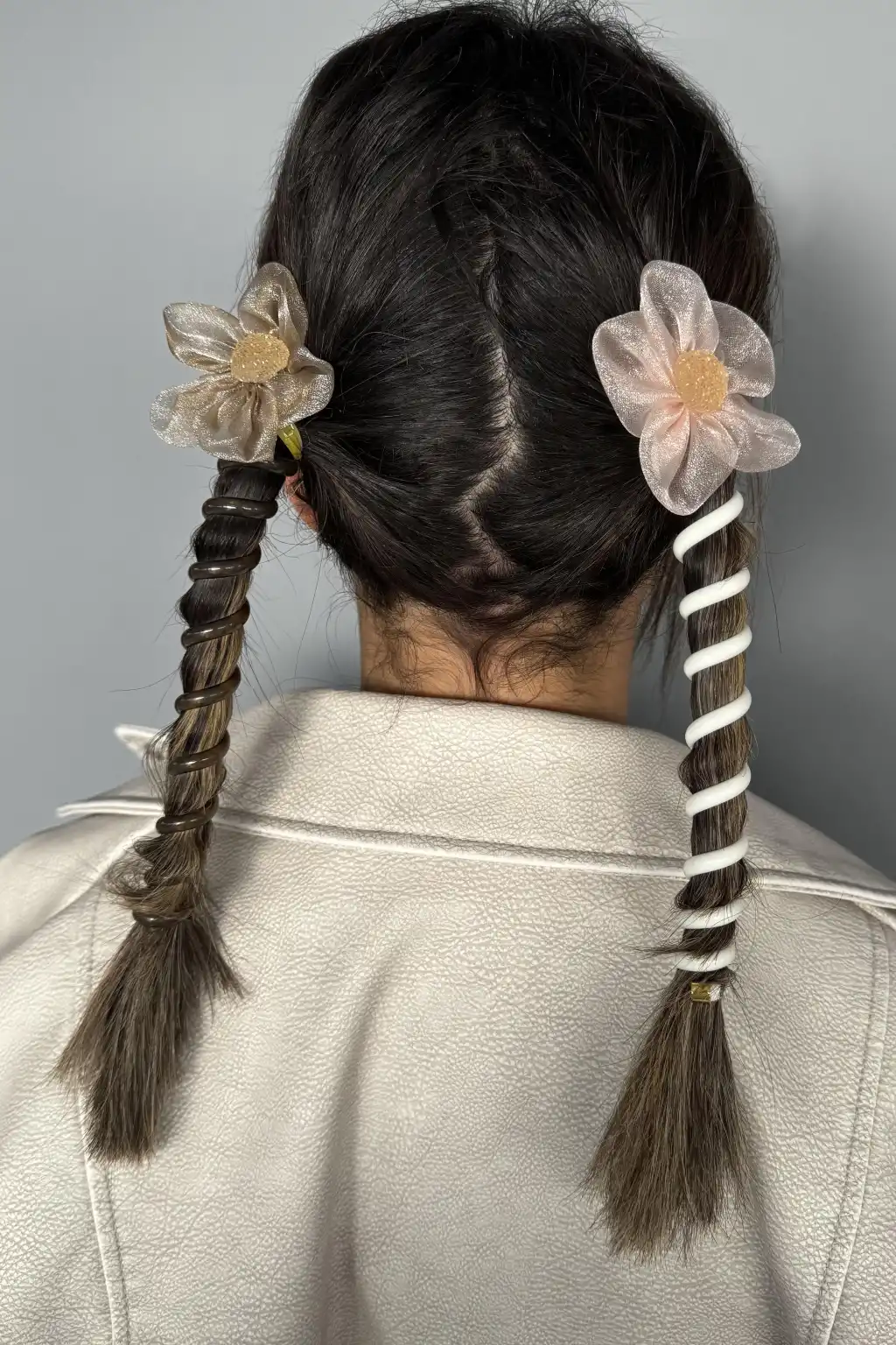 Karışık Renk 2´li Taş Detaylı Yaylı Spiral Toka
