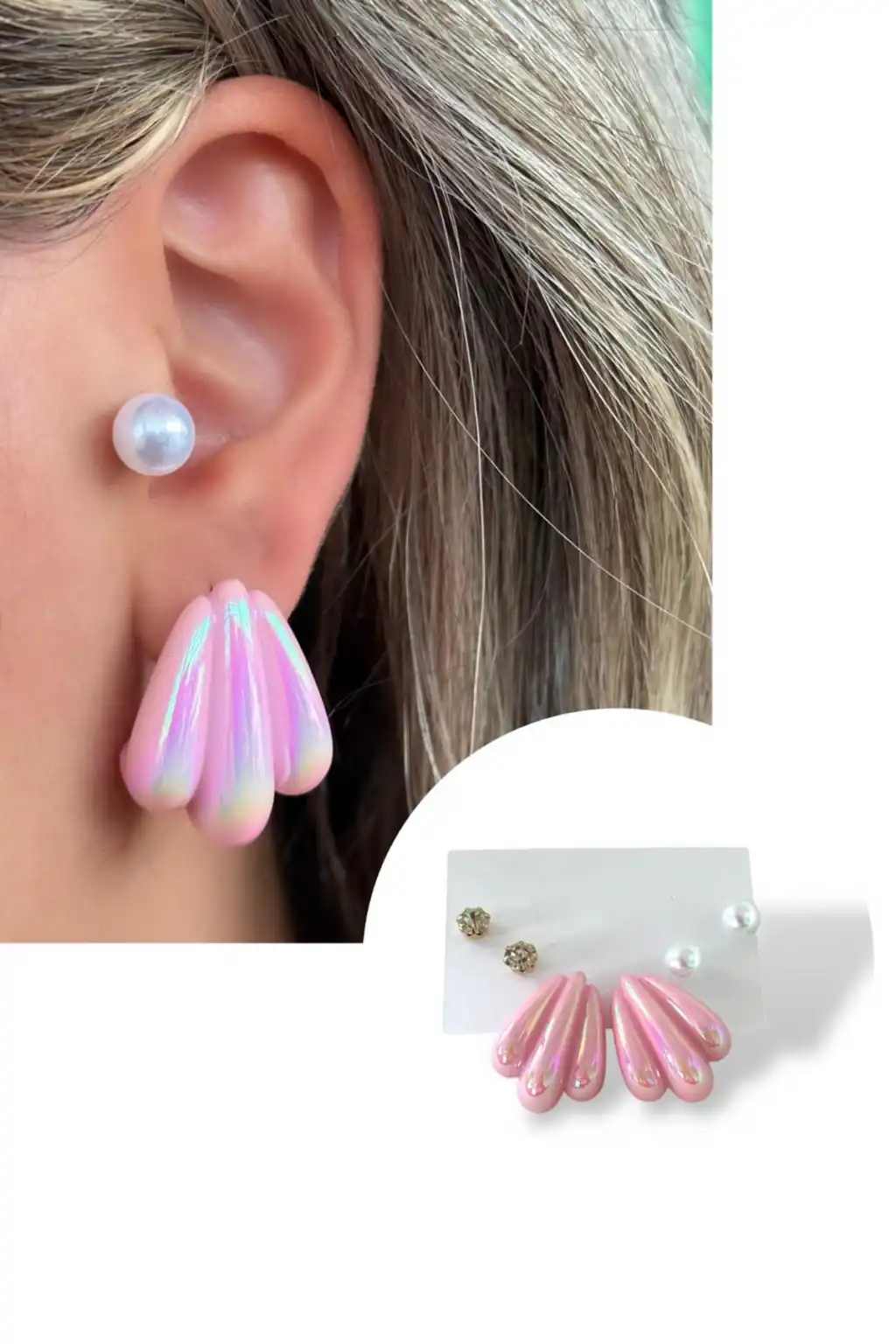 3'lü Gümüş Renk Kalp Figürlü 14K Altın Kaplama TX Küpe