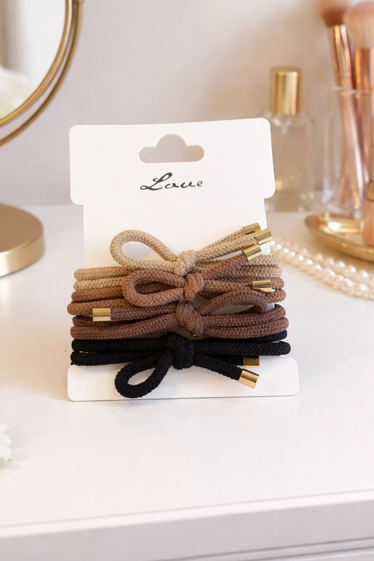 Karışık Renk 4'lü Kurdele Detaylı Lastik Toka Set