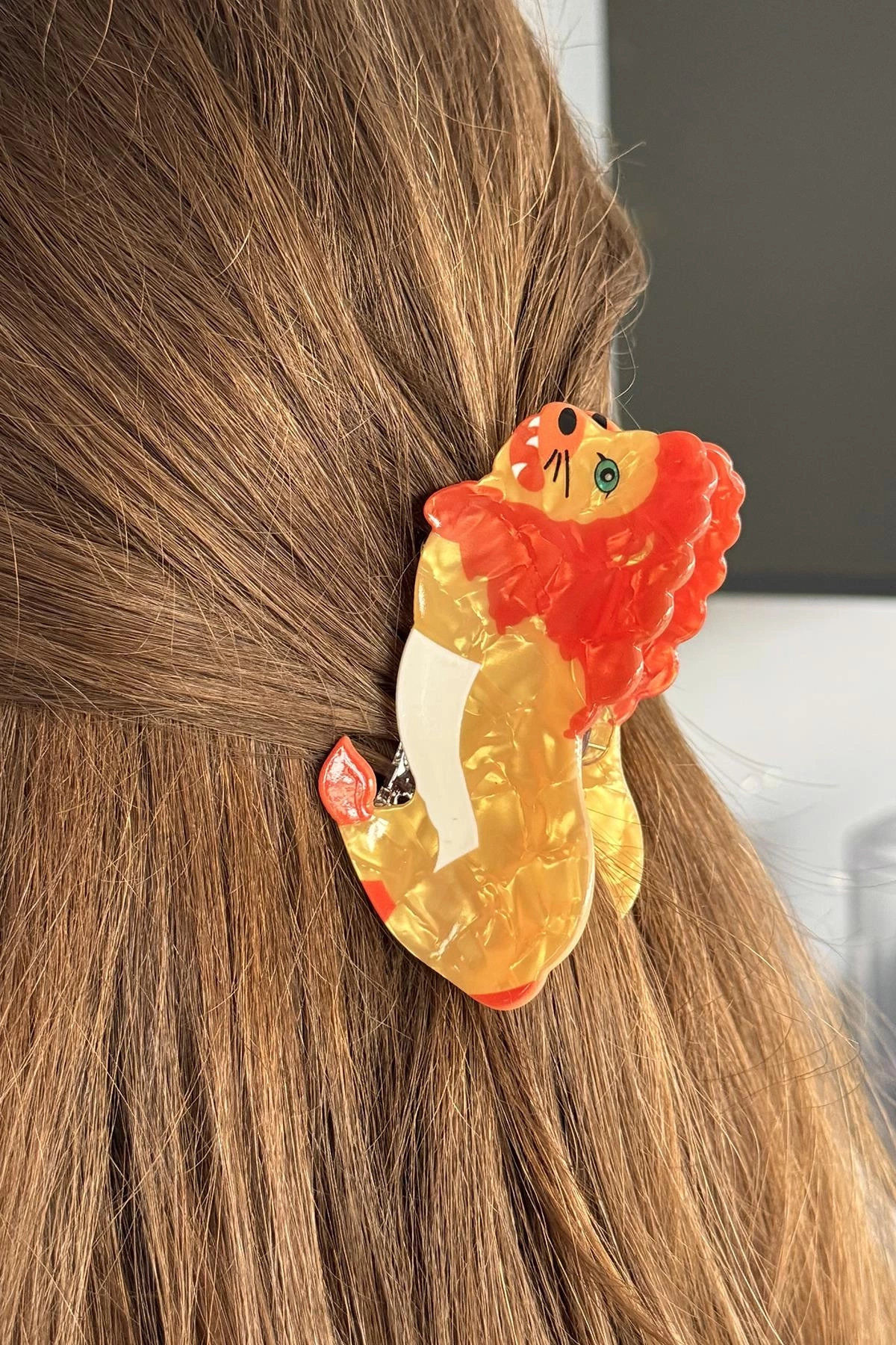 Karışık Renk Aslan Figürlü Kemik Mandal Toka