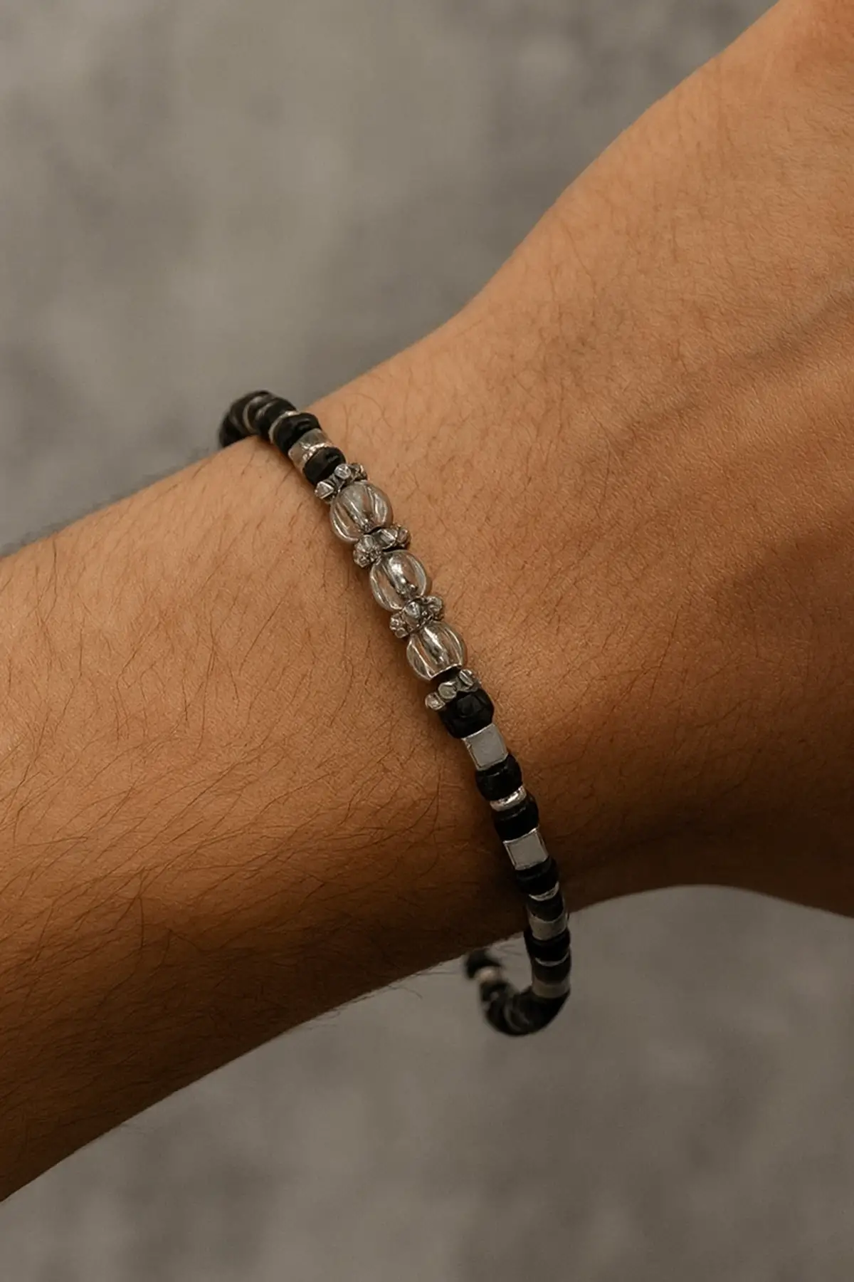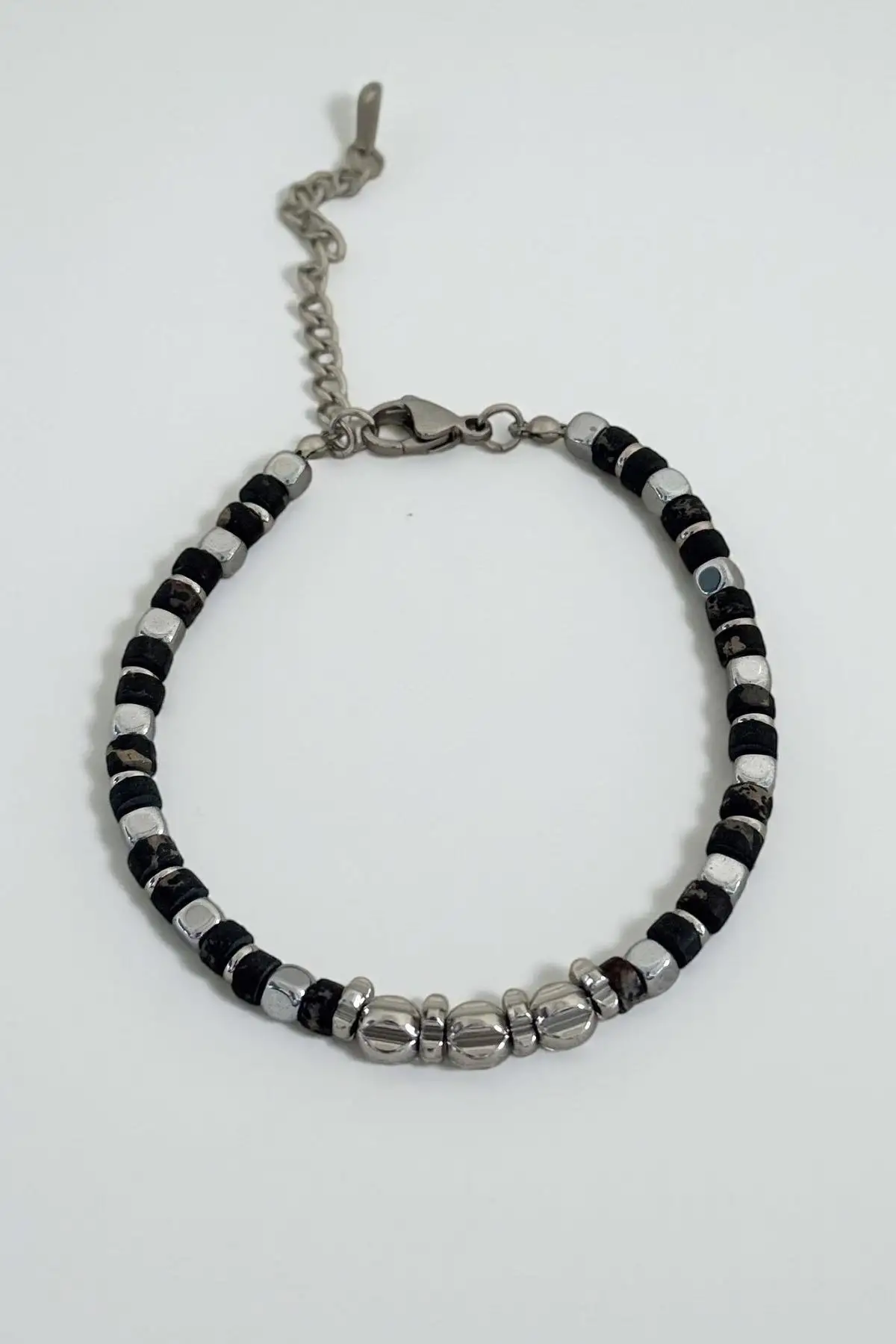 Karışık Renk Boncuk Detaylı Çelik Erkek Bileklik