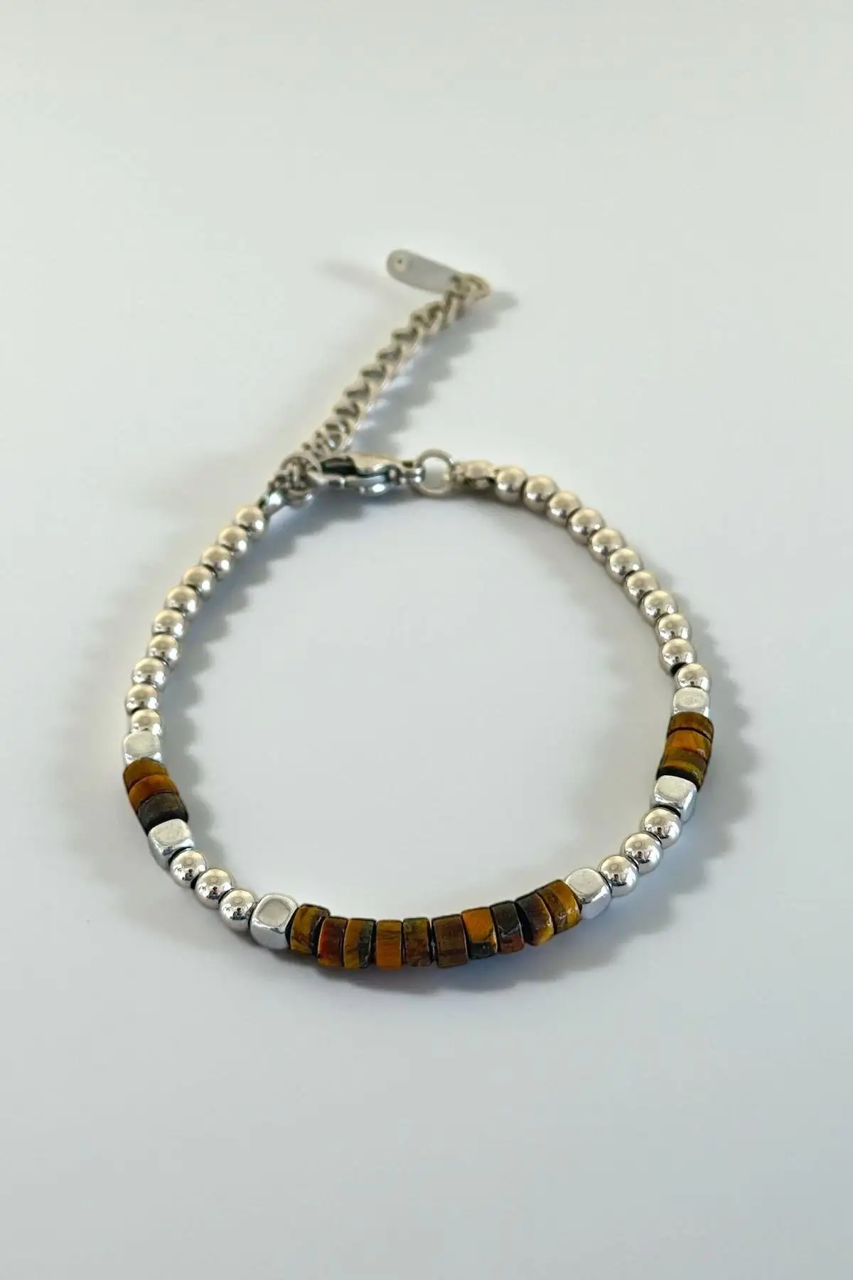 Karışık Renk Boncuk Detaylı Çelik Erkek Bileklik