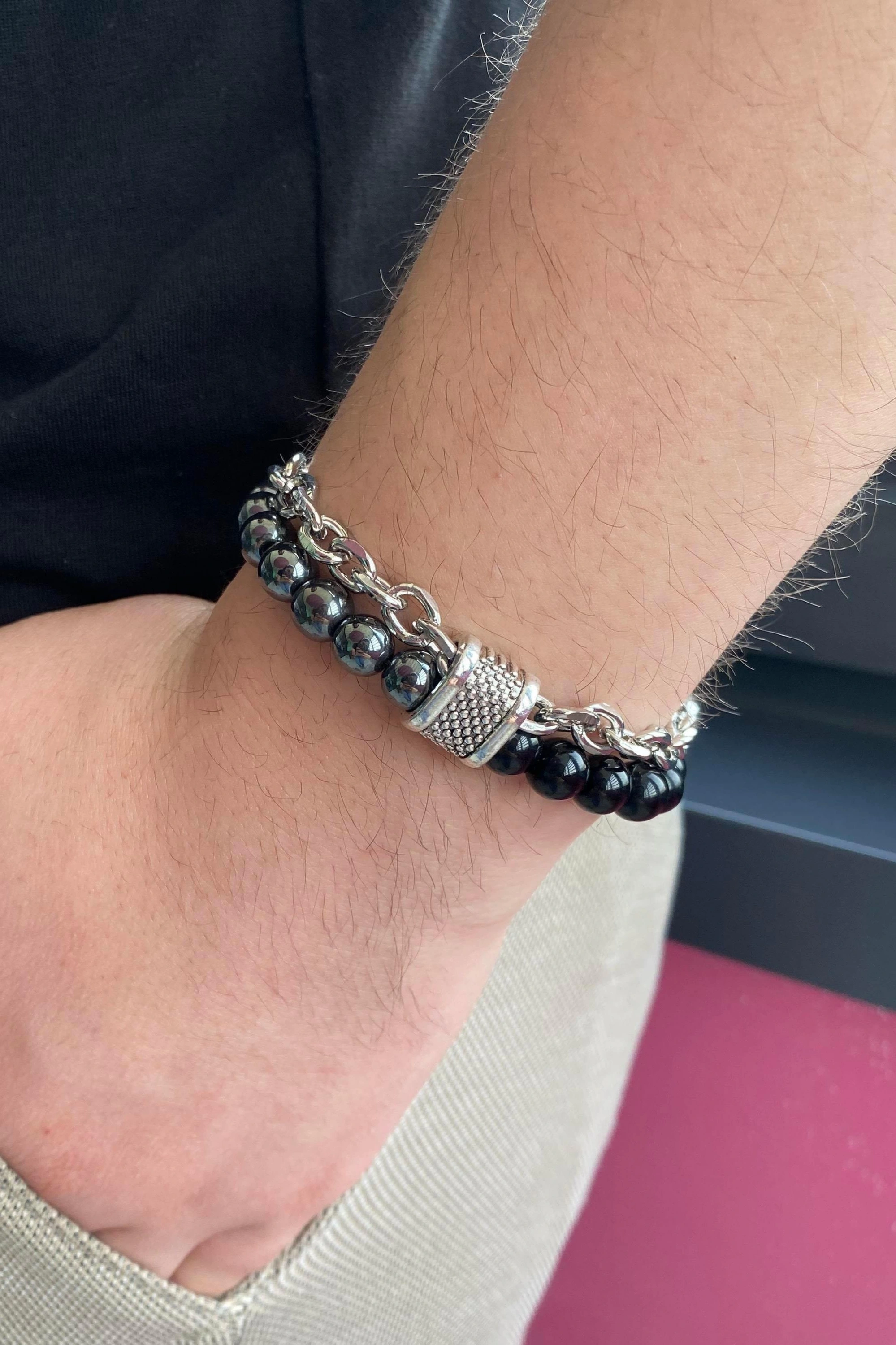 Karışık Renk Boncuk Detaylı Erkek Bileklik