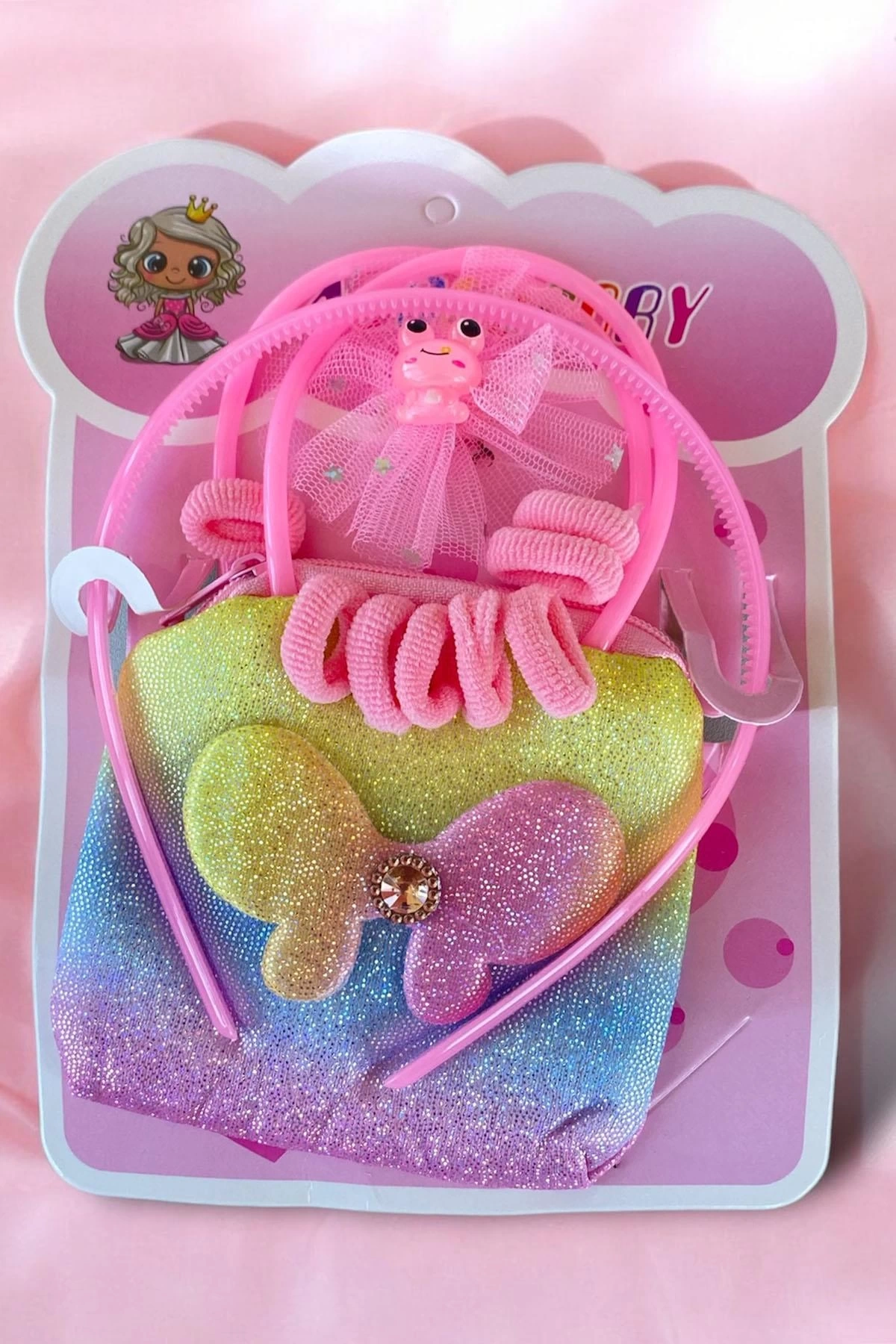 Açık Pembe Renk Çocuk Tarak,Bileklik,Yüzük Ve Toka Set