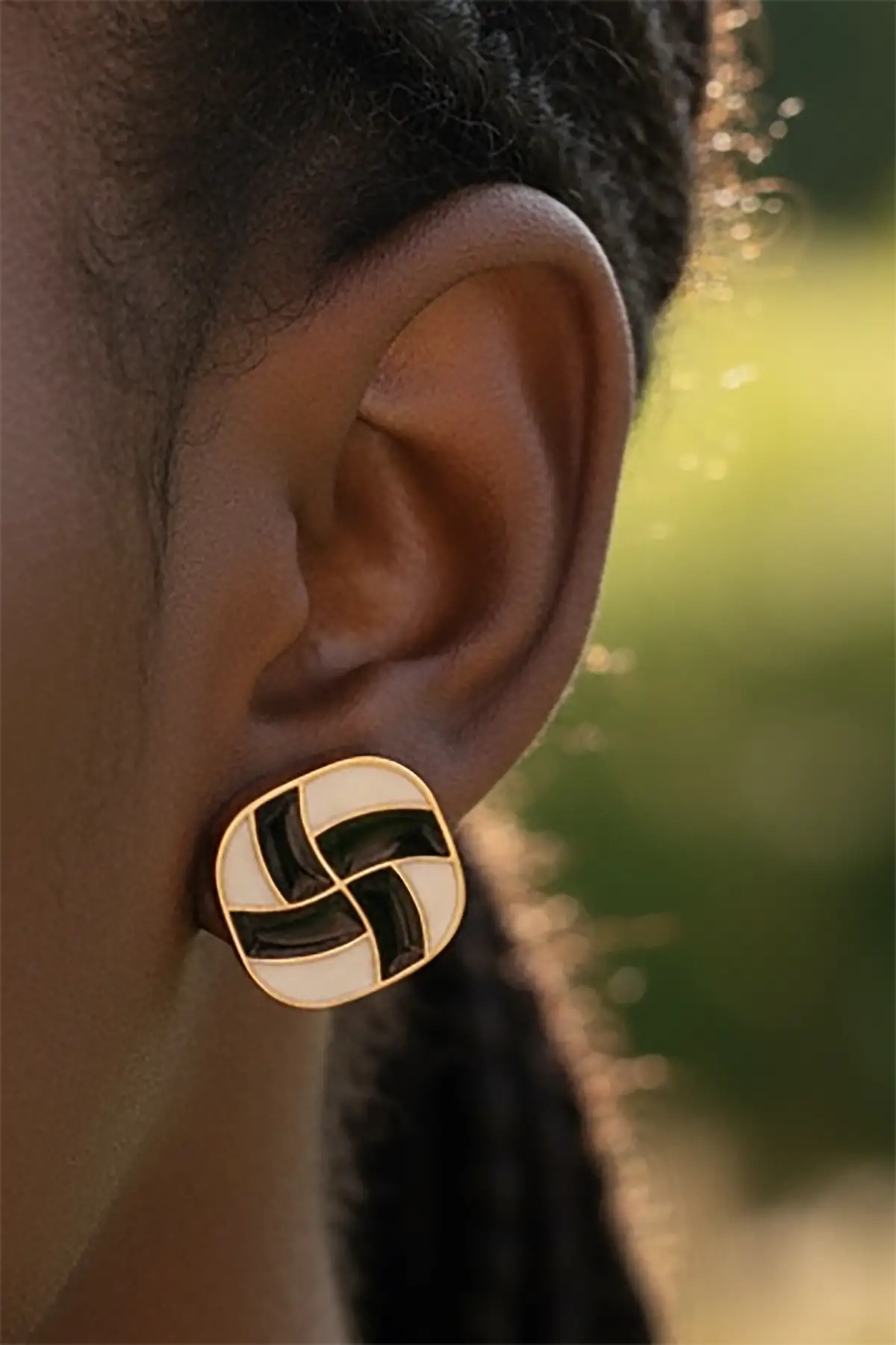 Altın Renk Yonca Figürlü Çelik Küpe (Çift)