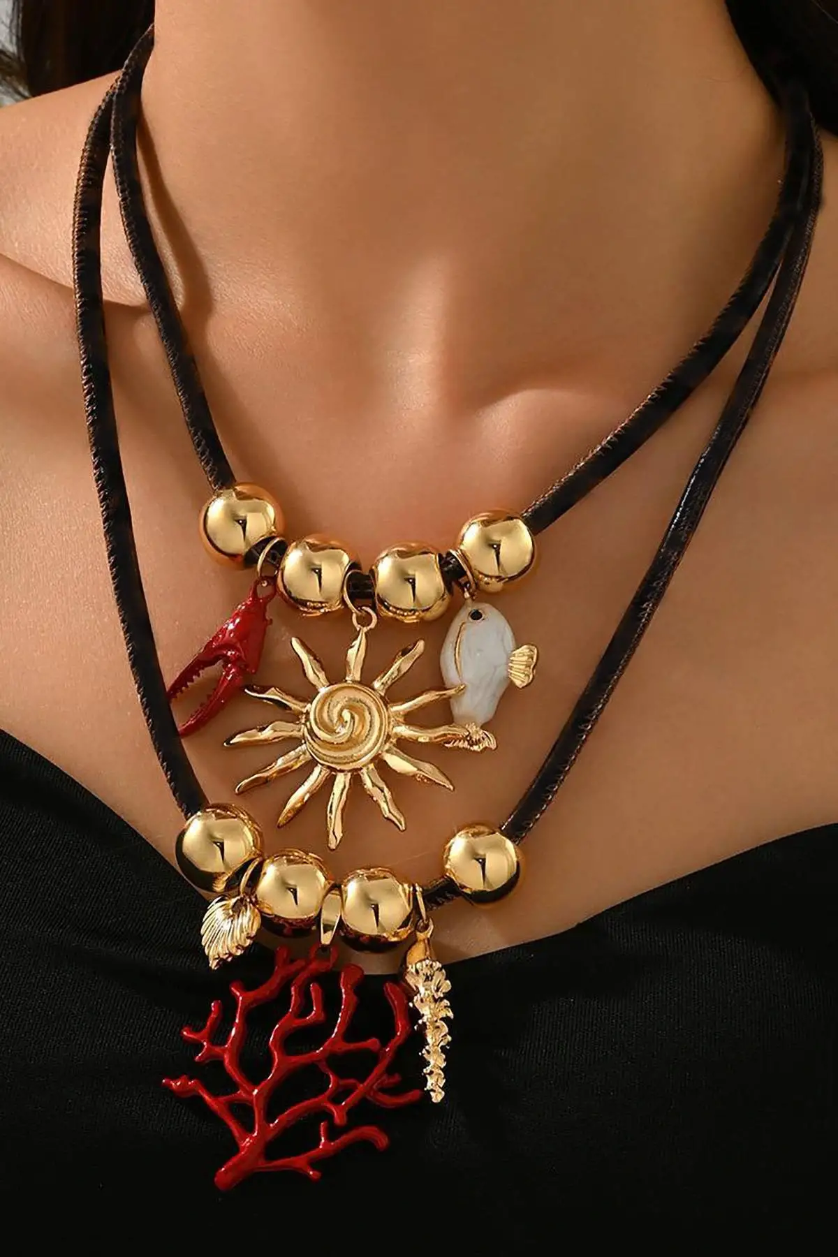 Karışık Renk Charmlı Tasarım Kolye