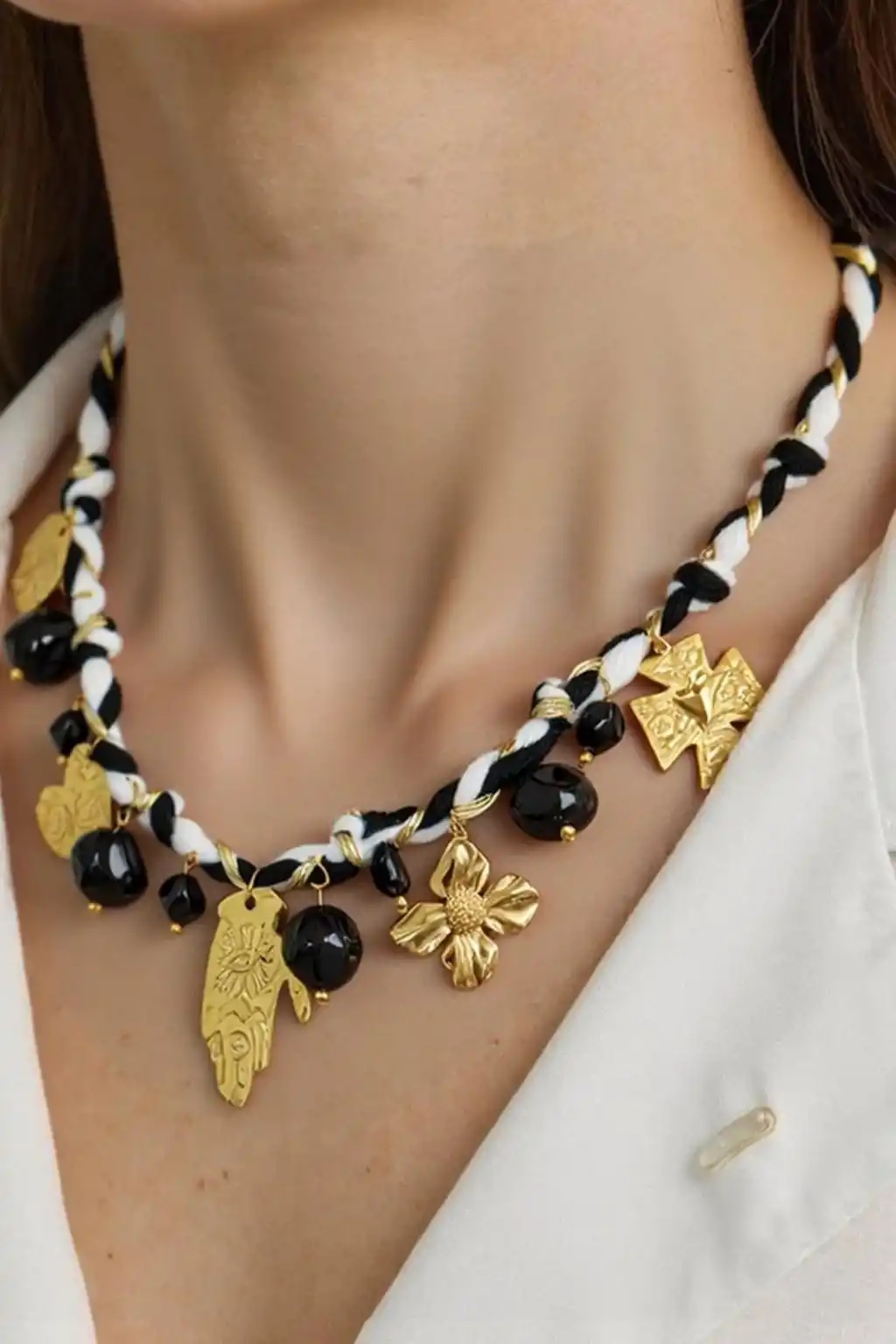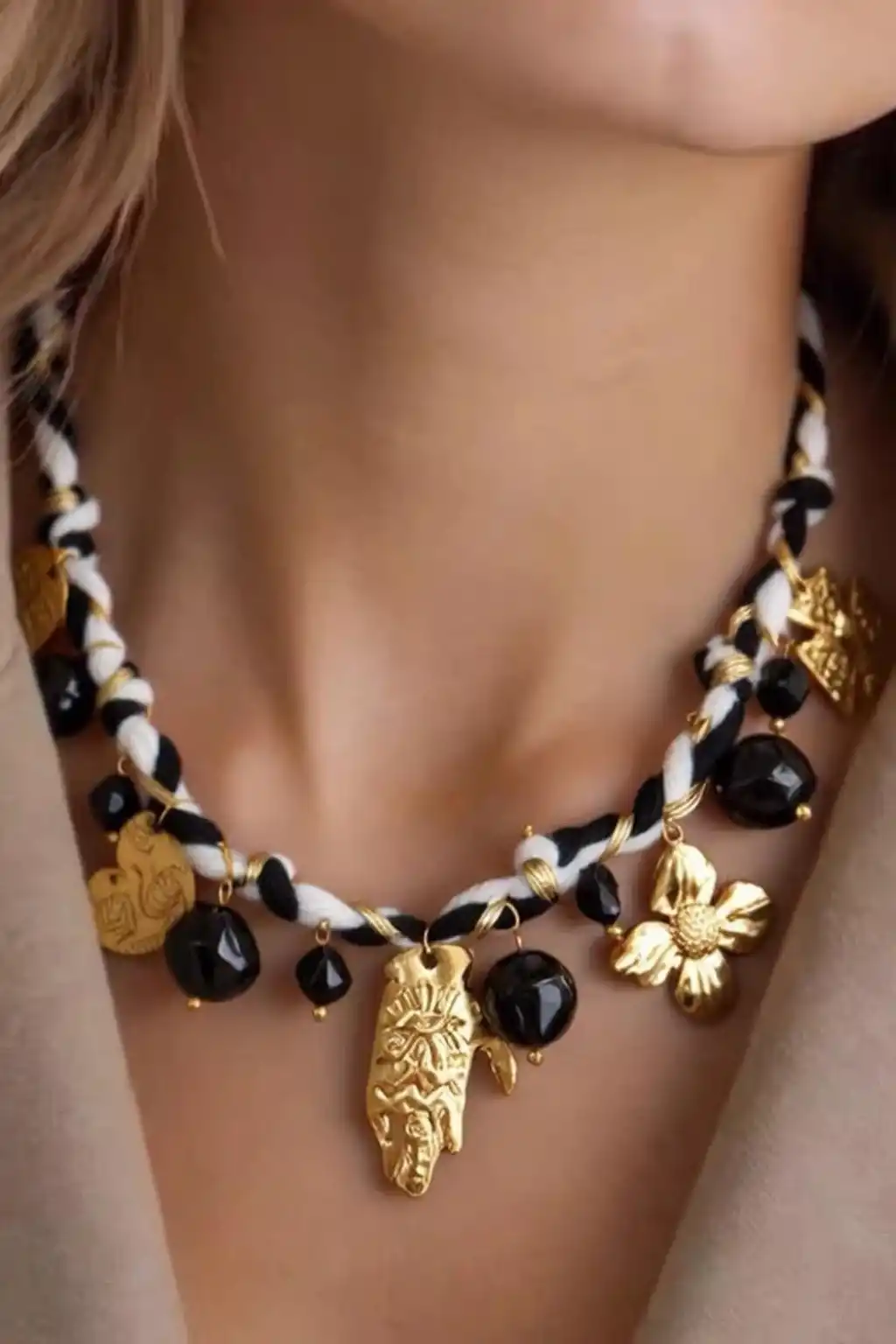 El işçiliğiyle hazırlanan özel tasarım kolyemiz, modern dokusu ve şık detaylarıyla tarzınıza zarif bir dokunuş katar. Günlük stilinize veya özel davet kombinlerinize kolayca uyum sağlar.