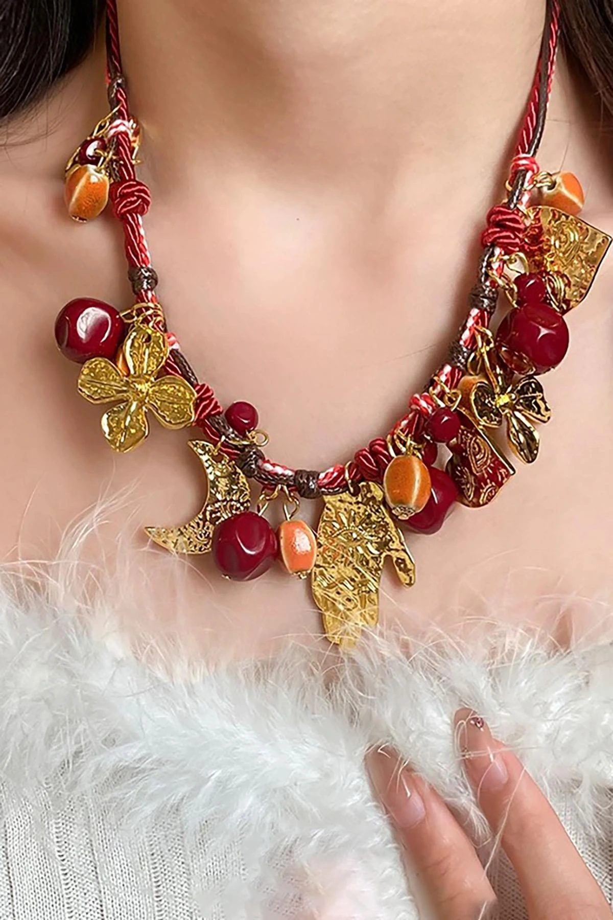 Karışık Renk Charmlı Tasarım Kolye