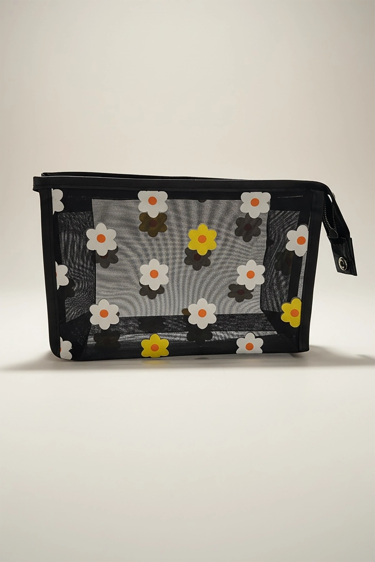 Karışık Renk Çiçek Detaylı Makyaj Çantası