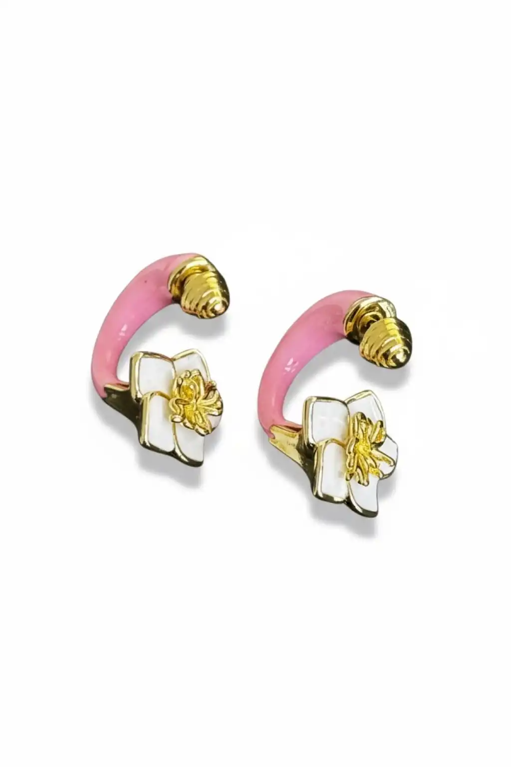 Altın Renk Çiçek Figürlü Sallantılı Küpe (Çift)