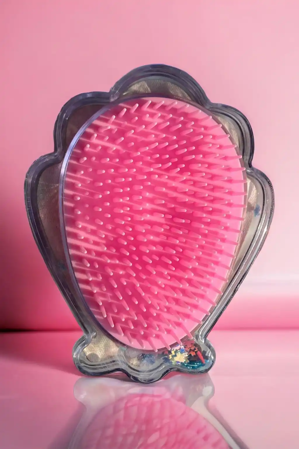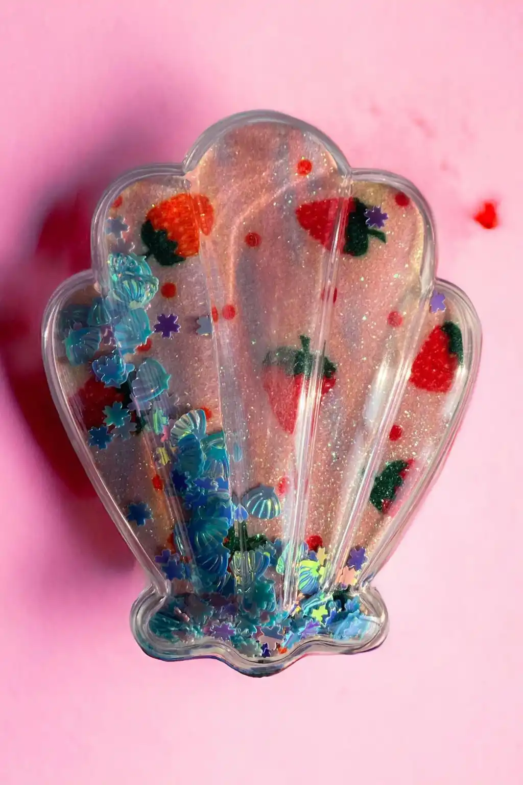 Karışık Renk Deniz Kabuğu Detaylı Çilek Figürlü Simli Taşınabilir Saç Tarama Fırçası/ Tarak