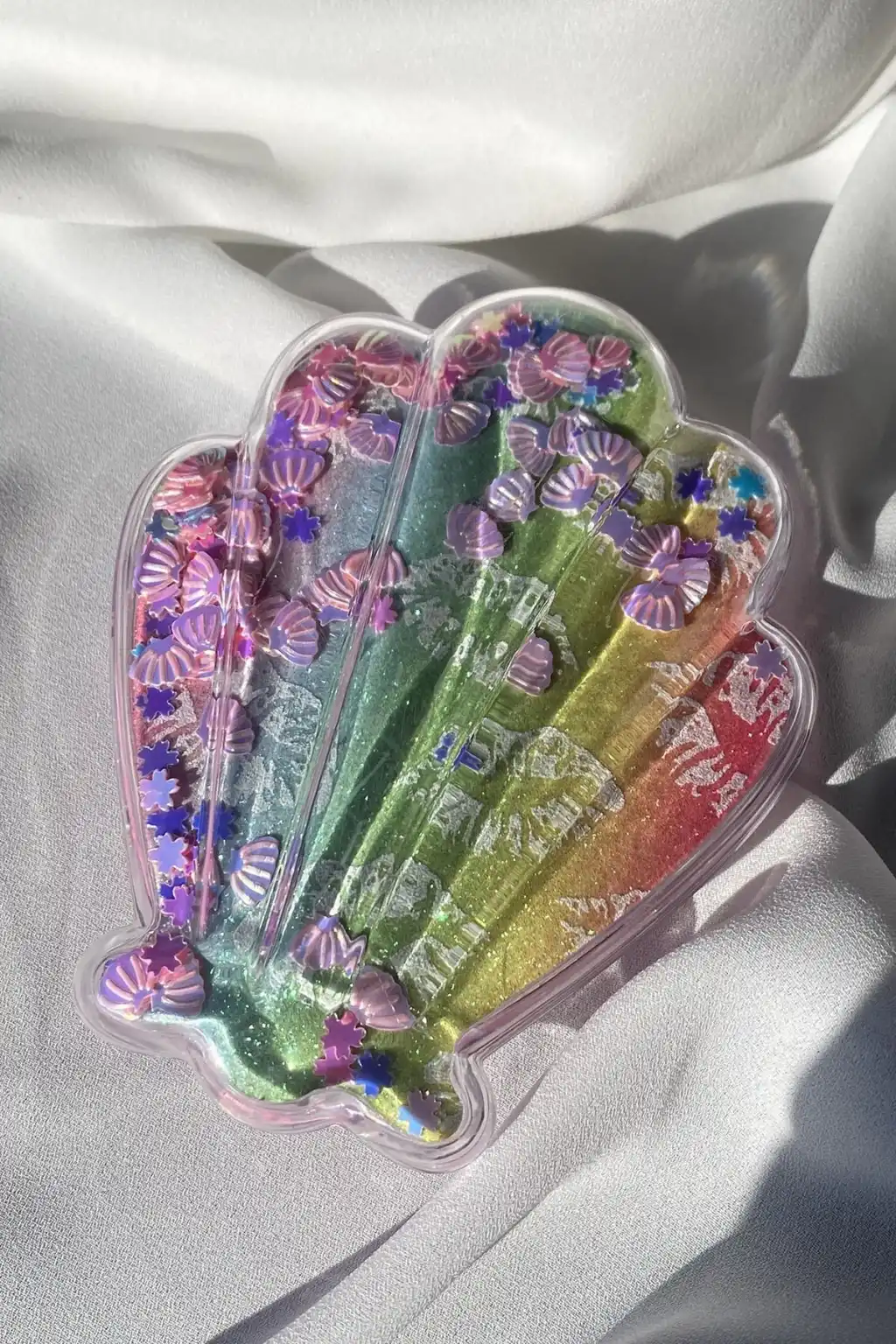 Karışık Renk Deniz Kabuğu Detaylı Öpücük Figürlü Simli Taşınabilir Saç Tarama Fırçası/ Tarak