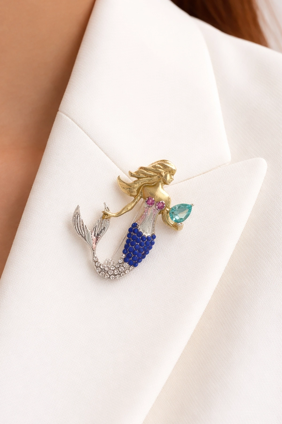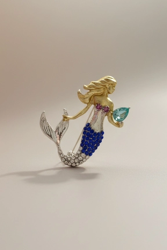 Karışık Renk Deniz Kızı Figürlü Taşlı Broş