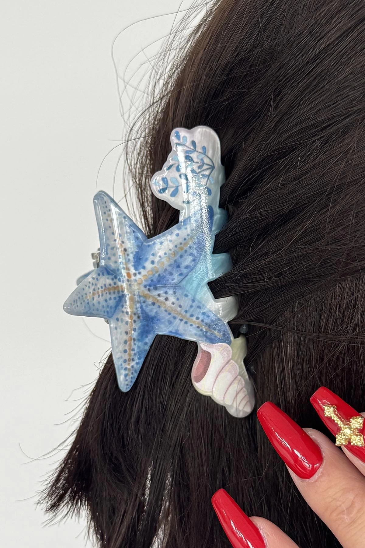 Karışık Renk Deniz Yıldızı Figürlü Kemik Mandal Toka