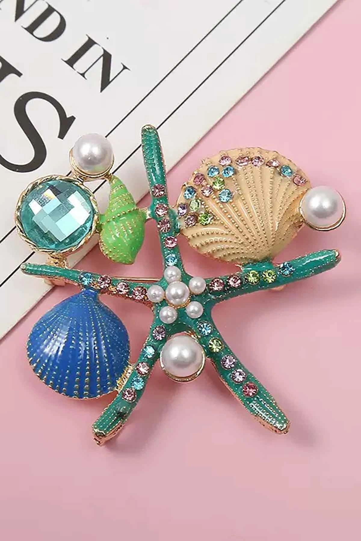 Karışık Renk Deniz Yıldızı Figürlü Taşlı Broş