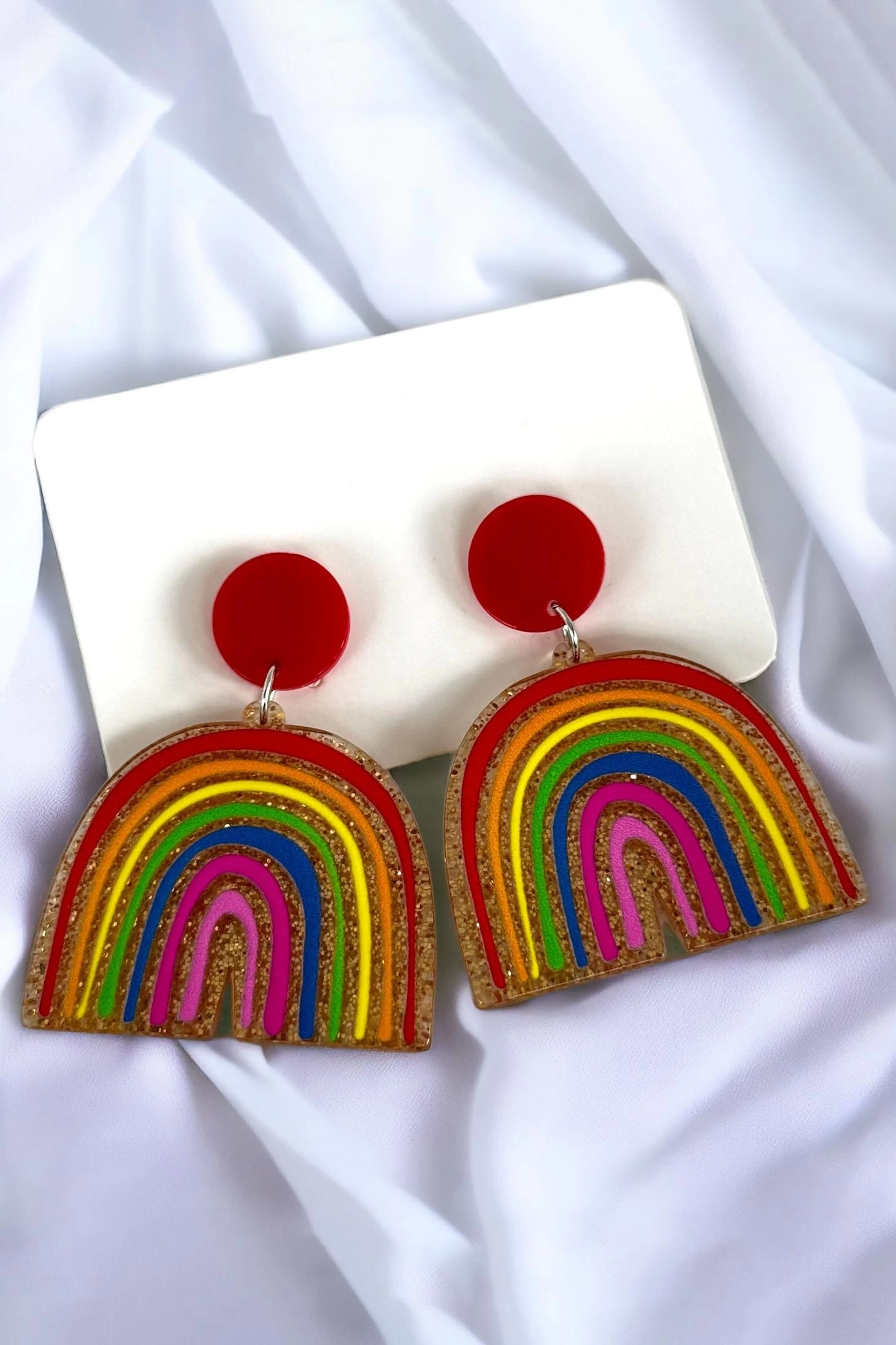 Karışık Renk Gökkuşağı Figürlü Sallantılı Küpe (Çift)