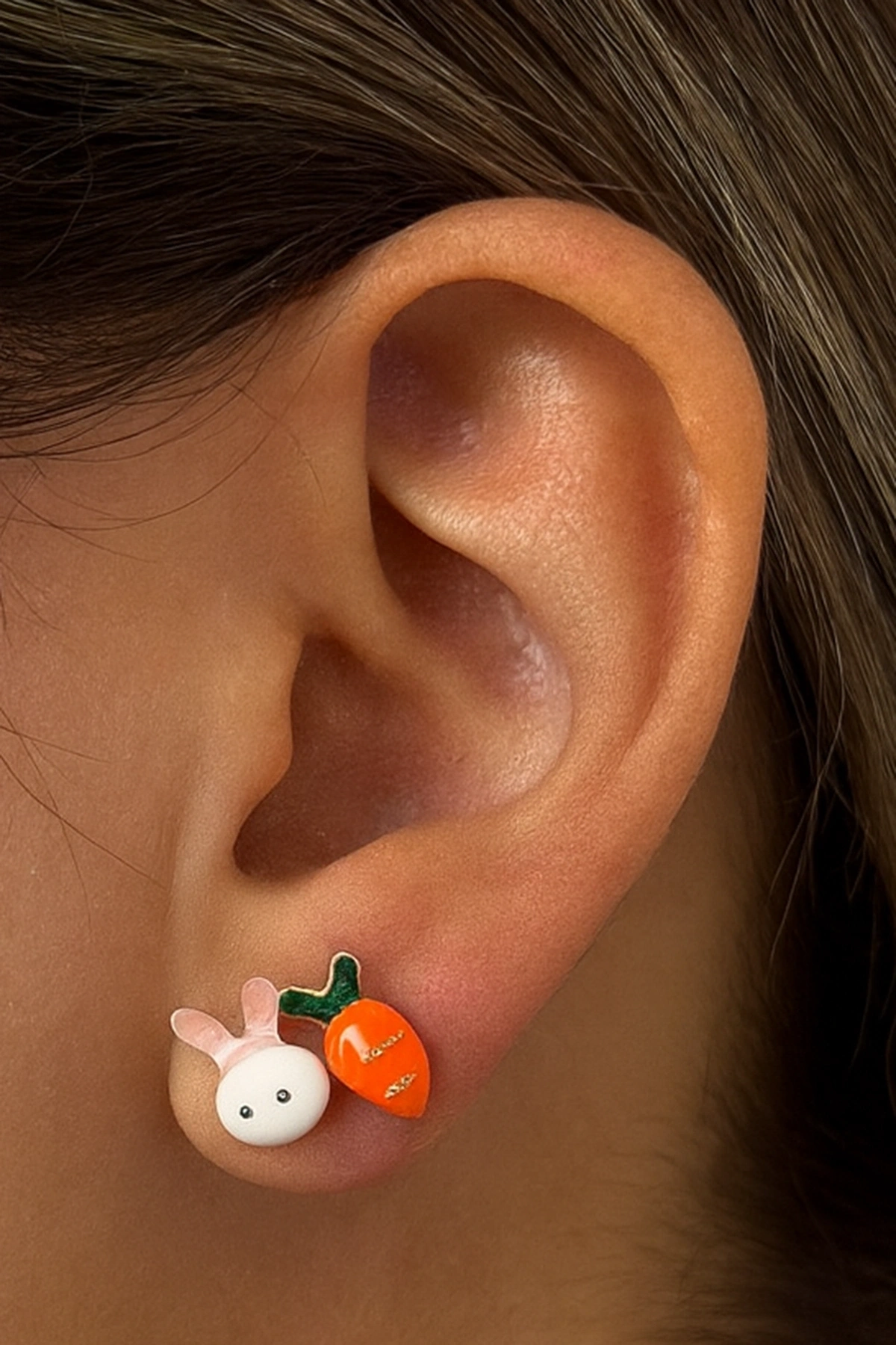 Karışık Renk Havuç Ve Tavşan Figürlü Çocuk Küpe (Çift)