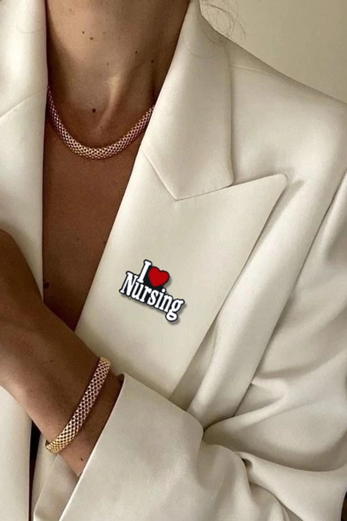 Karışık Renk I Nursing Yazılı Kalp Figürlü Broş