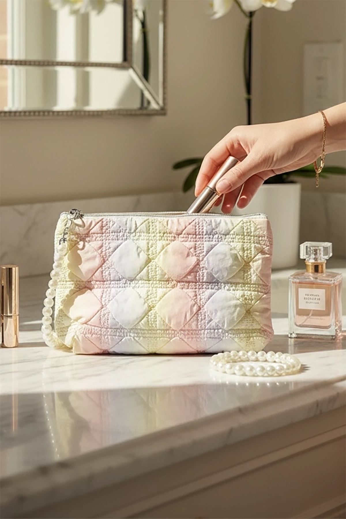 Karışık Renk İnci Detaylı Makyaj Çantası