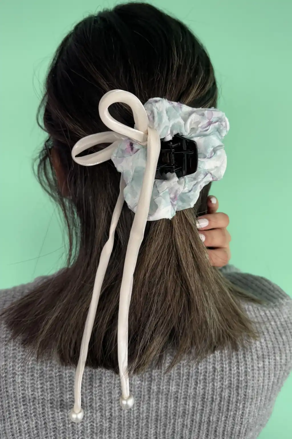 Krem Renk Kurdele Figürlü İnci Detaylı Mandal Toka
