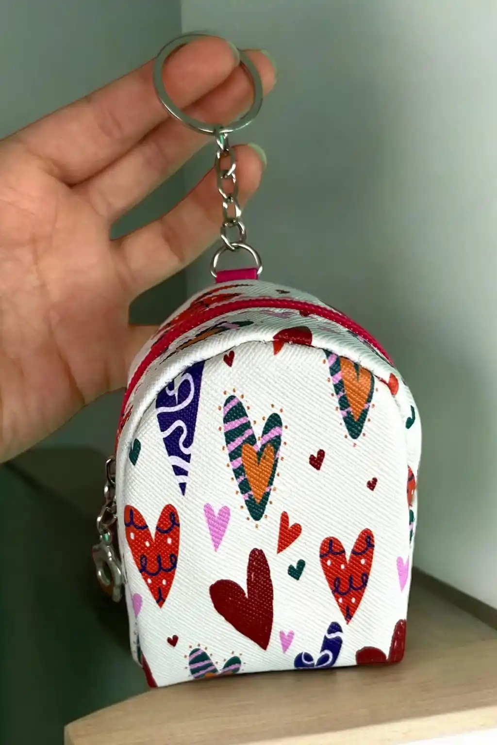Karışık Renk Kalp Figürlü Anahtarlık /Cüzdan