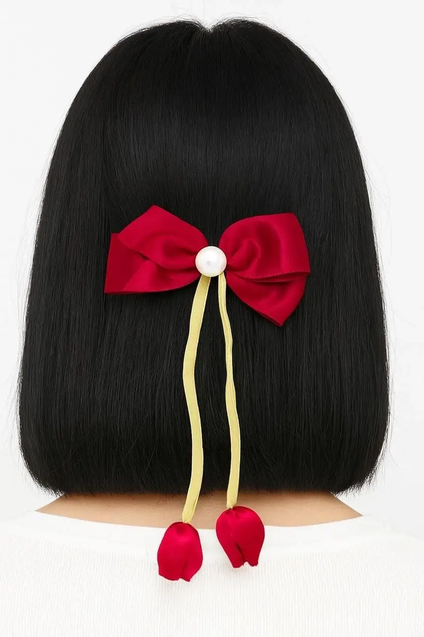 12'li Karışık Renk Kurdele Figürlü İnci Detaylı Otomat Toka Set