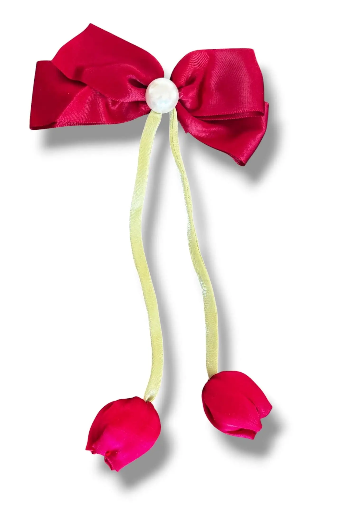 Pembe Ve Yeşil Renk Kurdele Detaylı Lale Figürlü Otomat Toka