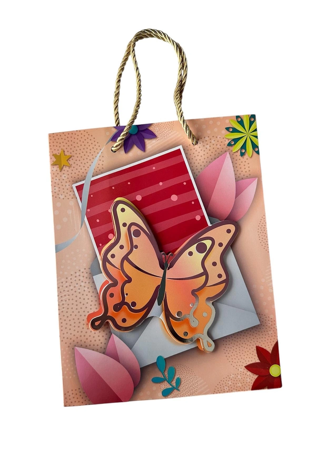 Karışık Renk Kelebek Figürlü 3D Görünümlü Karton Çanta