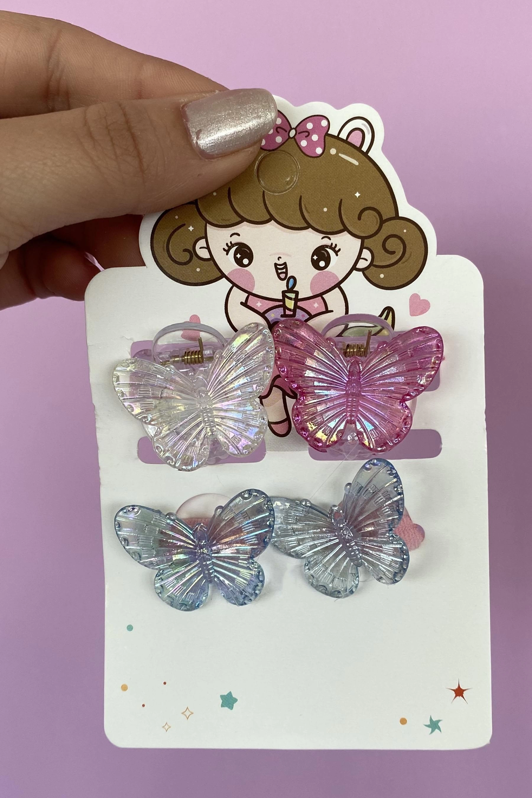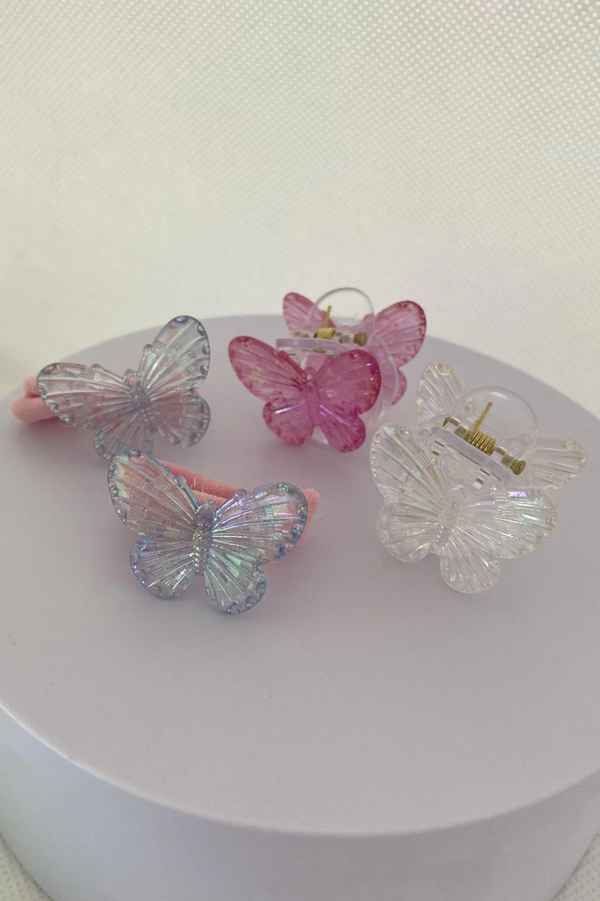 Karışık Renk Kelebek Figürlü Mandal Toka Ve Lastik Toka Set