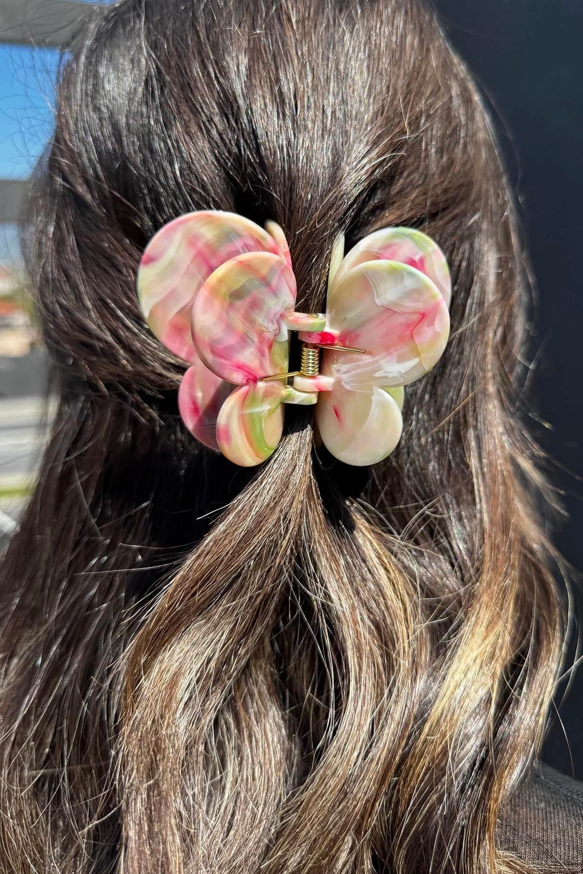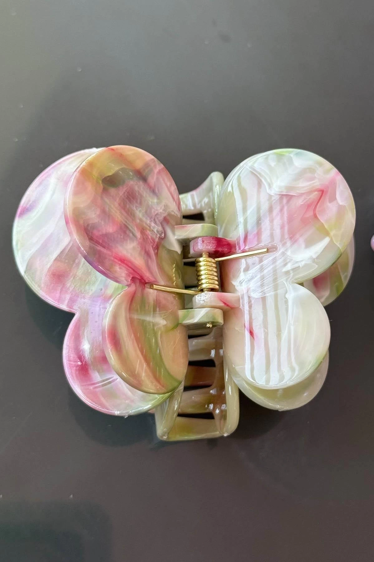 Karışık Renk Kelebek Figürlü Mermer Desenli Kemik Mandal Toka