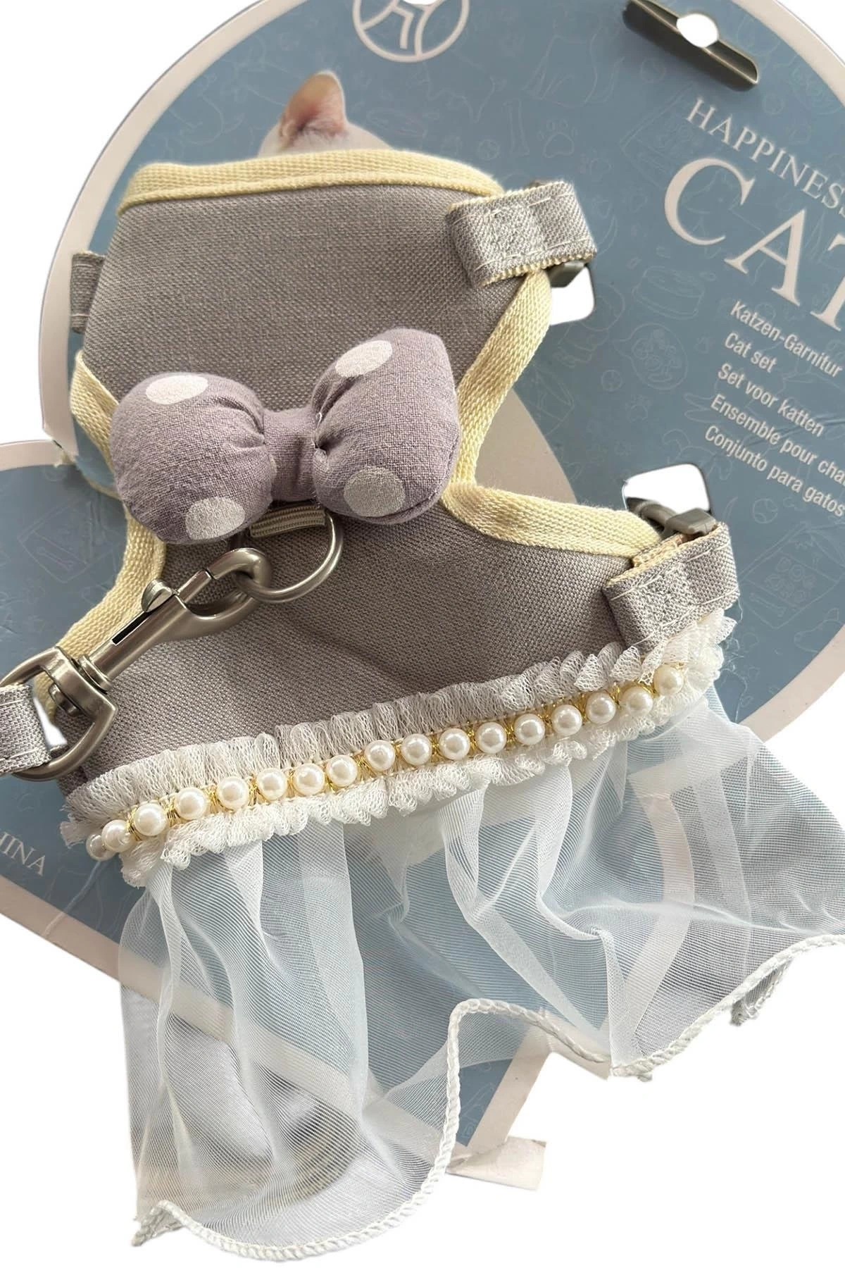 Karışık Renk Kurdele Figürlü İnci Ve Tül Detaylı Bel Göğüs Ayarlanabilir Kedi/Köpek Tasma