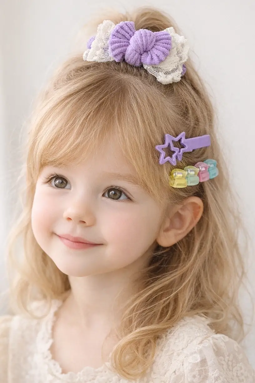 2'li Mor Renk Kurdele Figürlü Saçsız Bebek Tokası